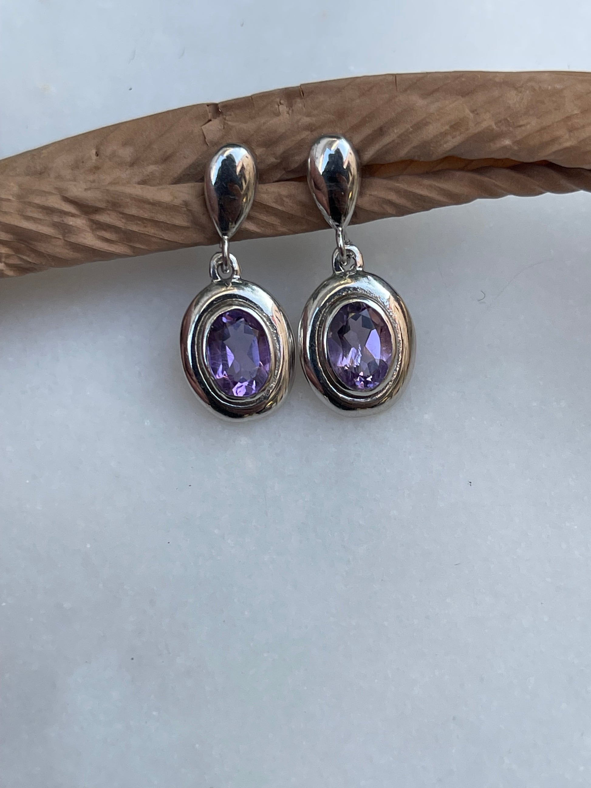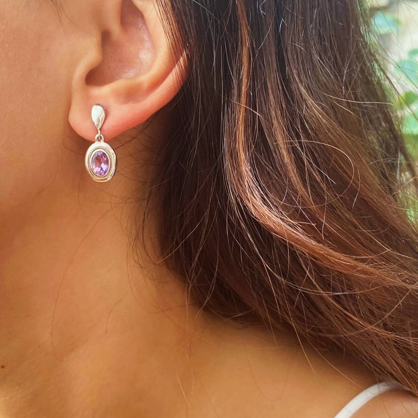 Sallantılı Ametist Taşlı Rodyum Kaplama Küpe