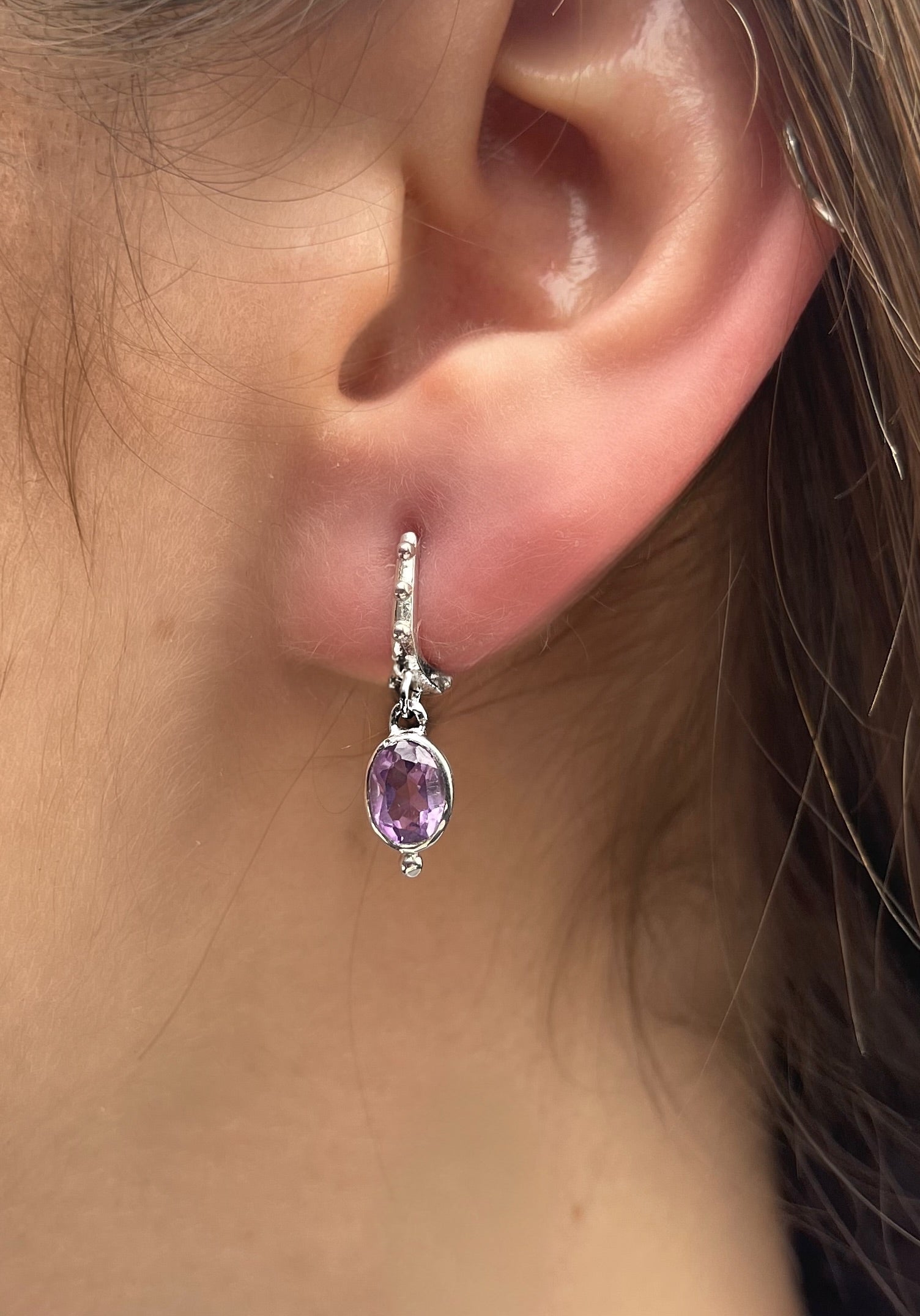 Sallantılı Ametist Taşlı Rodyum Kaplama Küpe