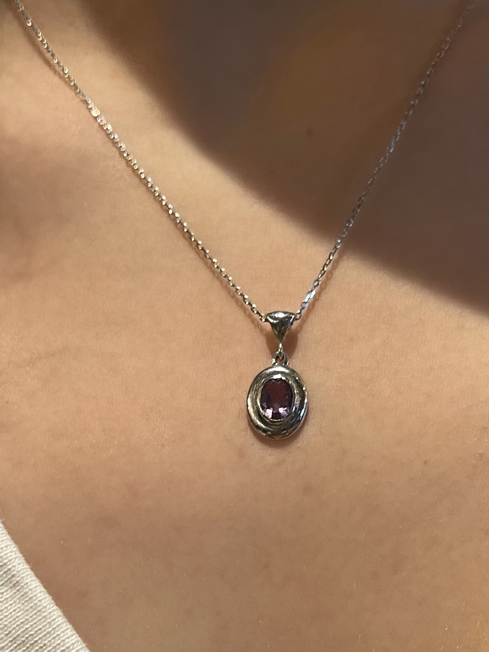 925 ayar Gümüş üzeri 0,50 mikron Rodyum kaplama faset kesimli 5x7 mm oval DOĞAL Ametist taşlı kolye, zincir uzunluğu 40+5 cm uzatma payı ile 45 cm'dir, şık kolyemizi kimyasallardan uzak tutarsanız uzun süre ilk günkü gibi kullanabilirsiniz. Kolyemizi tamamlayan küpelerimizde stokta olabilir kontrol edebilir eğer tükenmişse mesaj yollayabilirsiniz. Mağazamızda satışa sunduğumuz kolyemiz kendi tasarımımız ve üretimimizdir. DOĞAL olarak belirttiğimiz taşlı takılarımızda kullanılan taşlarımız için GARANTİ vermek isteriz. Sentetik Zirkon grubu taşlar ürünlerimizde kullanılırsa bu ürün açıklamalarında belirtilir.