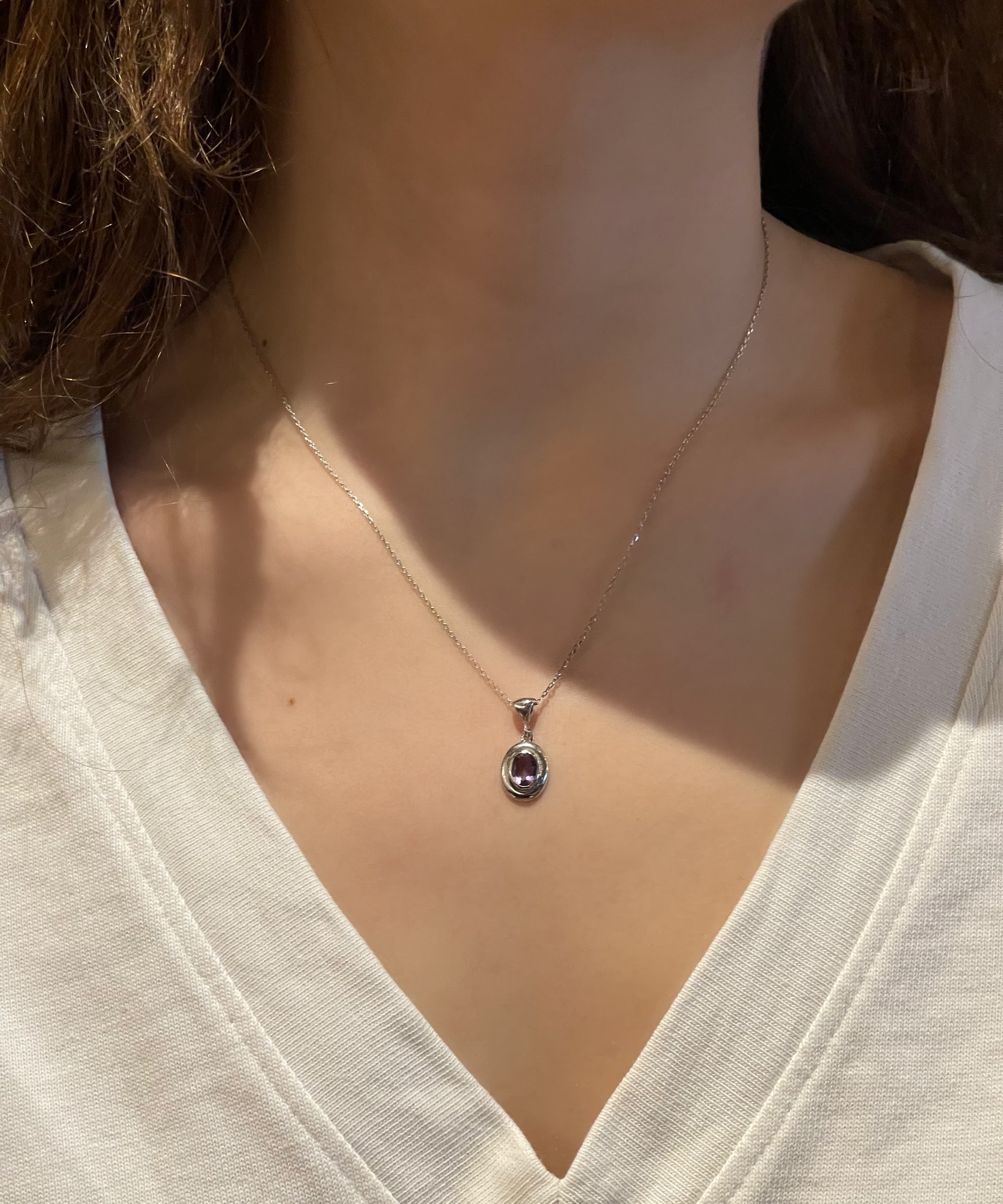 Ametist Taşlı Rodyum Kaplama Gümüş Minimal Kolye