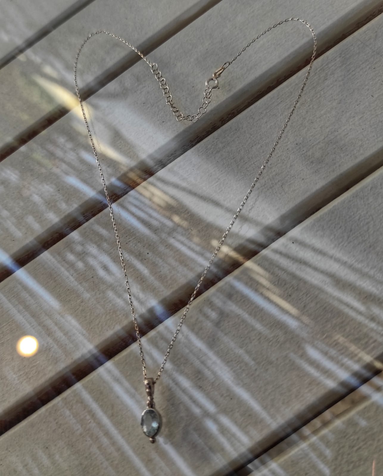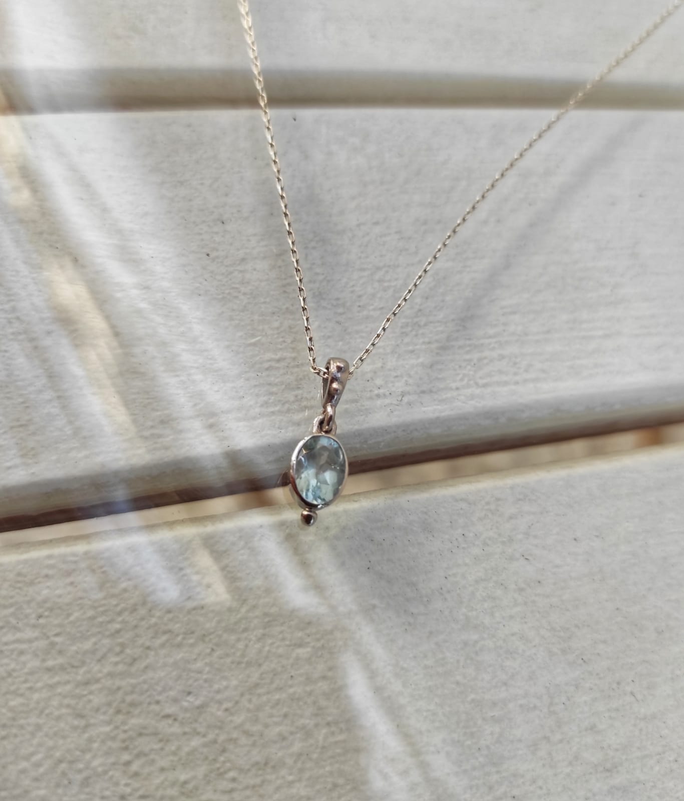 Akuamarin Taşlı Rodyum Kaplama Gümüş Minimal Kolye