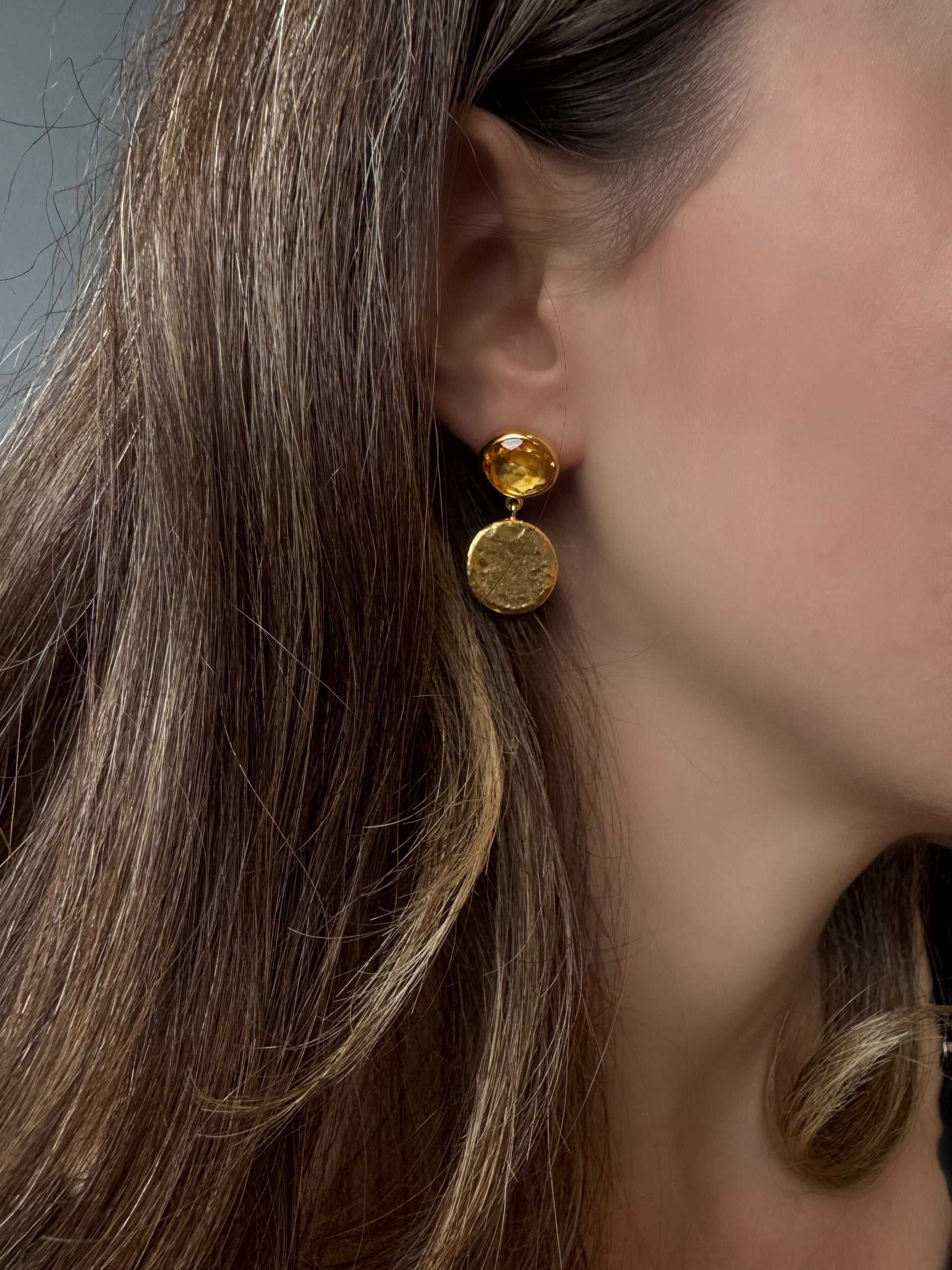 Otantik Dövme 24 Altın Sitrin Taşlı Küpe