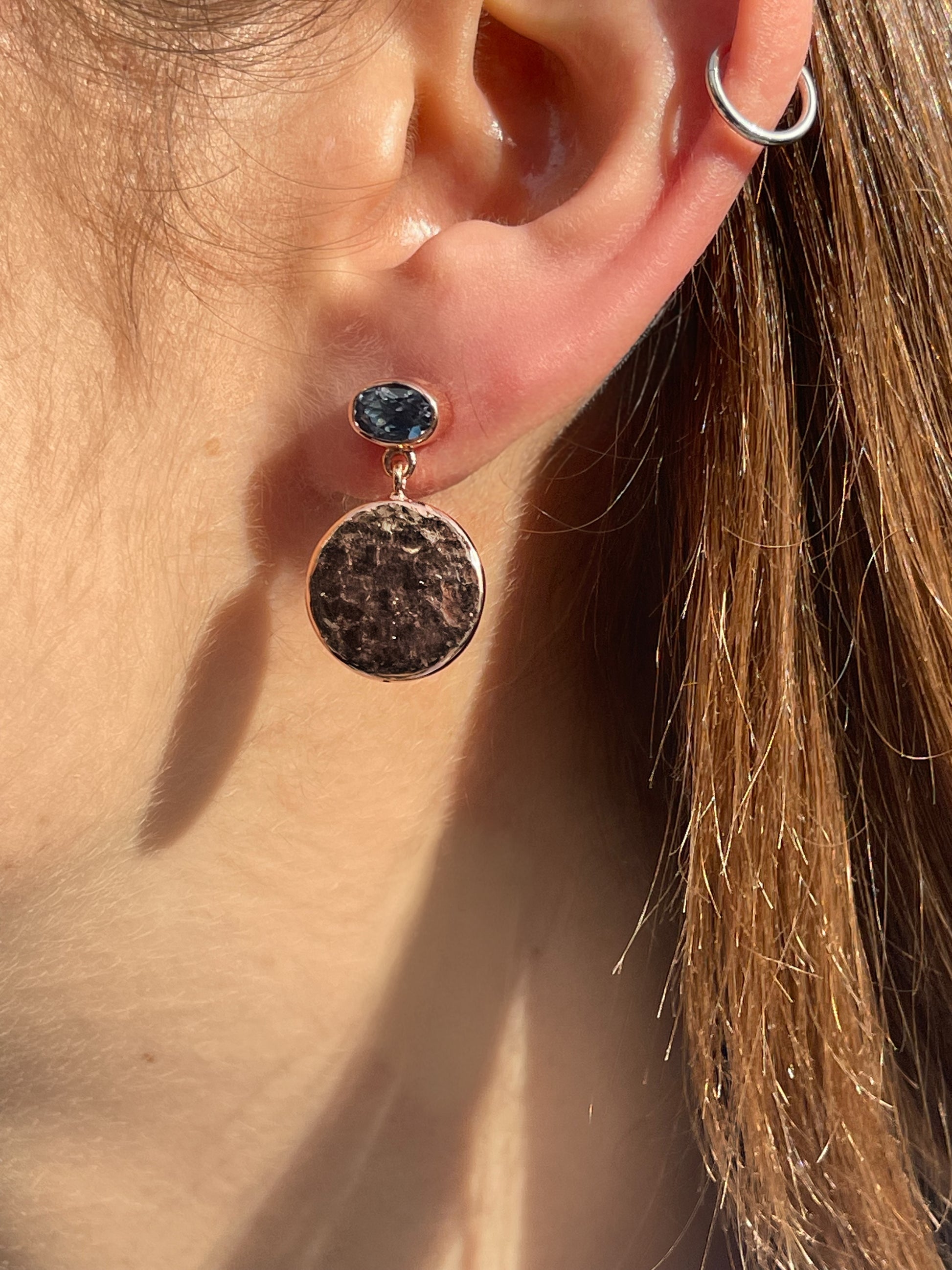 Has astar gümüşe dövme tekniğiyle doku verilmiş astardan el işi olarak üretilen küpemizde 5x7 mm oval faset kesimli DOĞAL Swiss Topaz taş kullanıldı, Görünümüne rağmen hafif olan sallantılı küpemiz 0,50 mikron pembe altın ile kaplandı, kimyasallardan uzak tutarsanız uzun süre ilk günkü gibi kullanabilirsiniz. Mağazamızda satışa sunduğumuz küpemiz kendi Tasarımımız ve üretimimizdir. DOĞAL olarak belirttiğimiz taşlı takılarımızda kullanılan taşlarımız için GARANTİ vermek isteriz. Sentetik Zirkon grubu taşlar ürünlerimizde kullanılırsa bu ürün açıklamalarında belirtilir.
