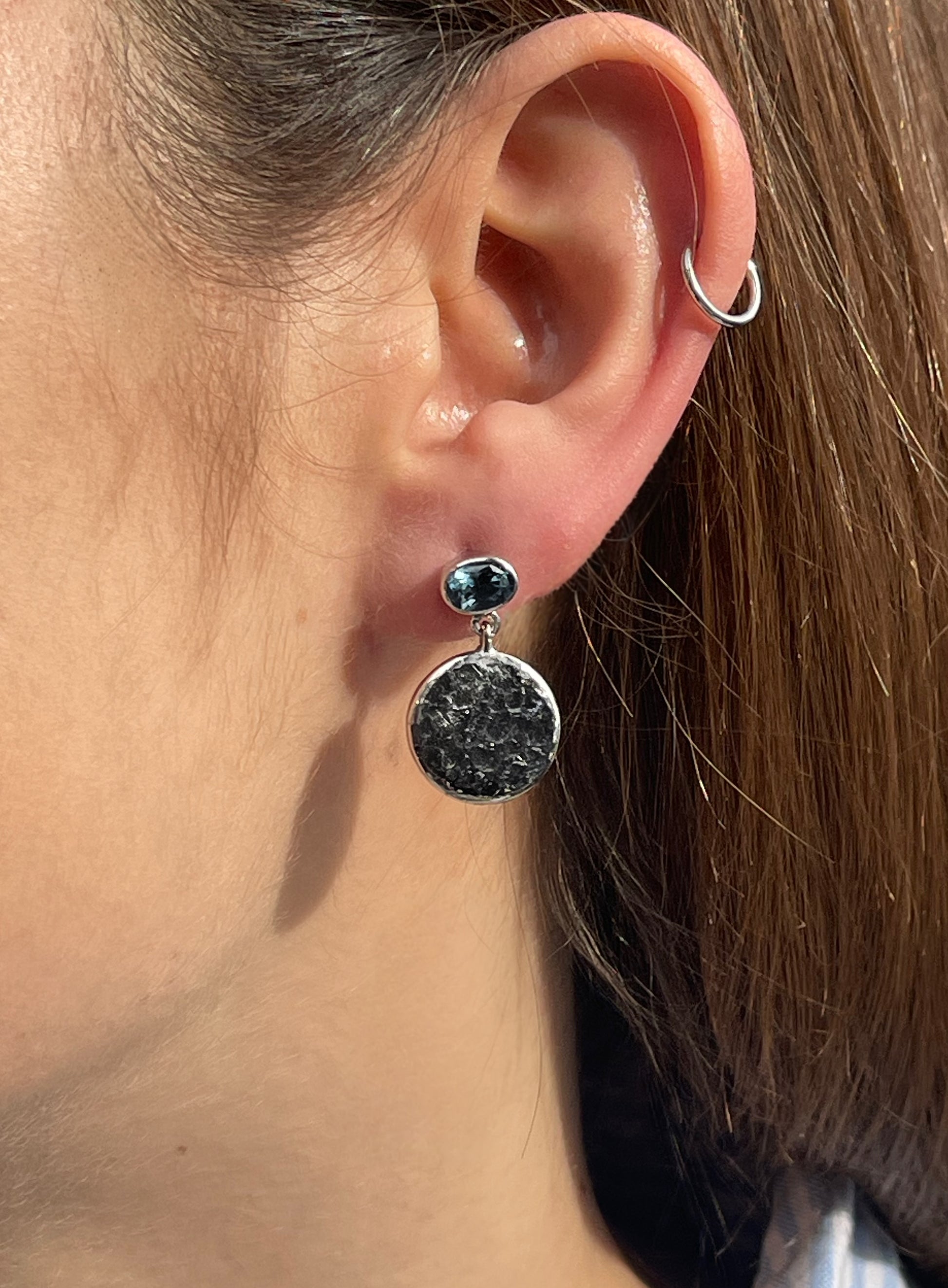 Otantik Dövme Gümüş Topaz Taşlı Küpe