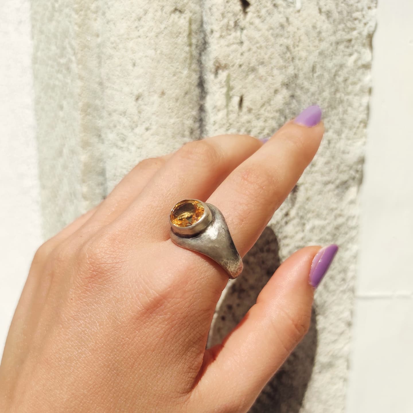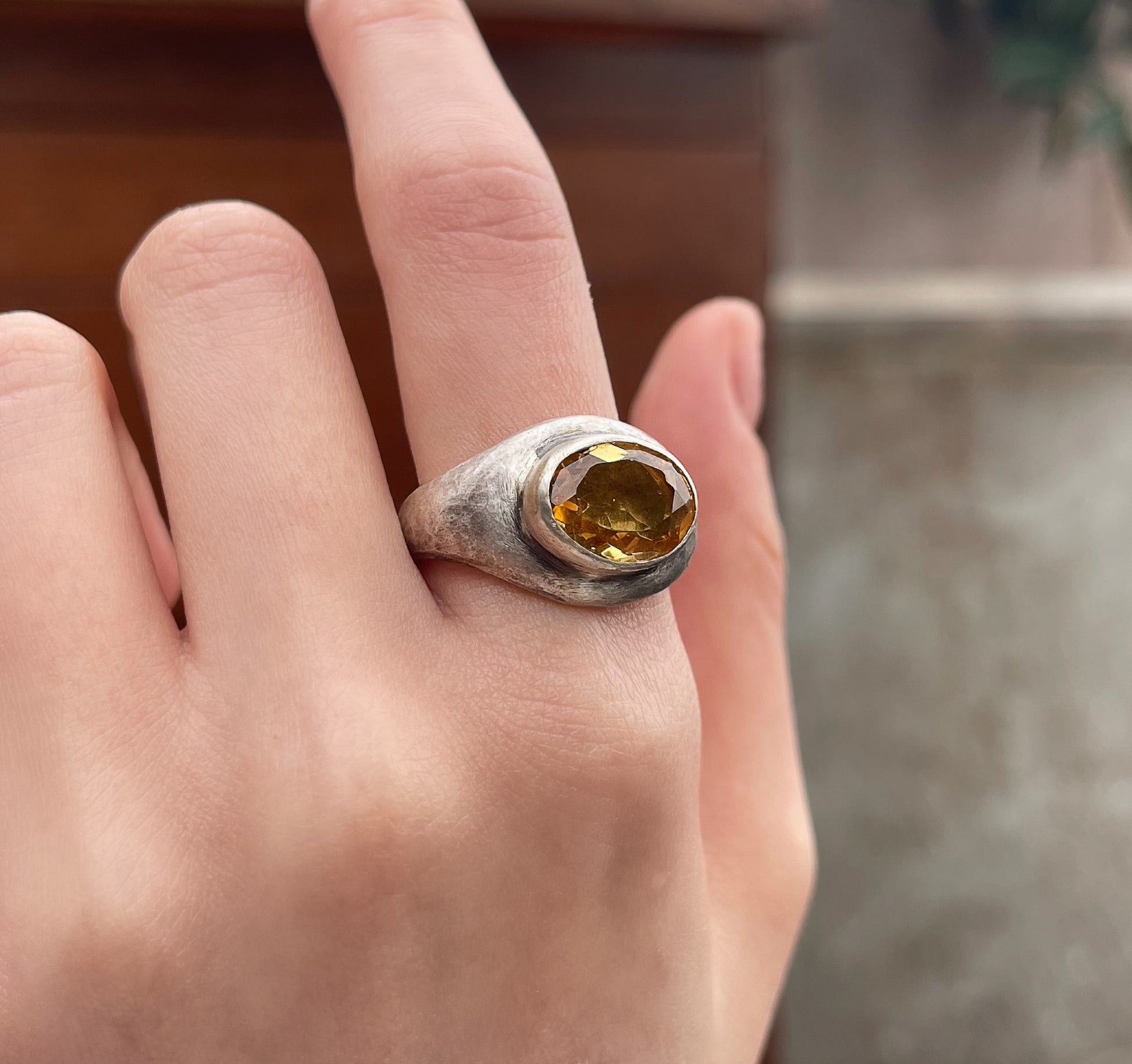 Sitrin Taşlı Oksit Mat Otantik Yüzük