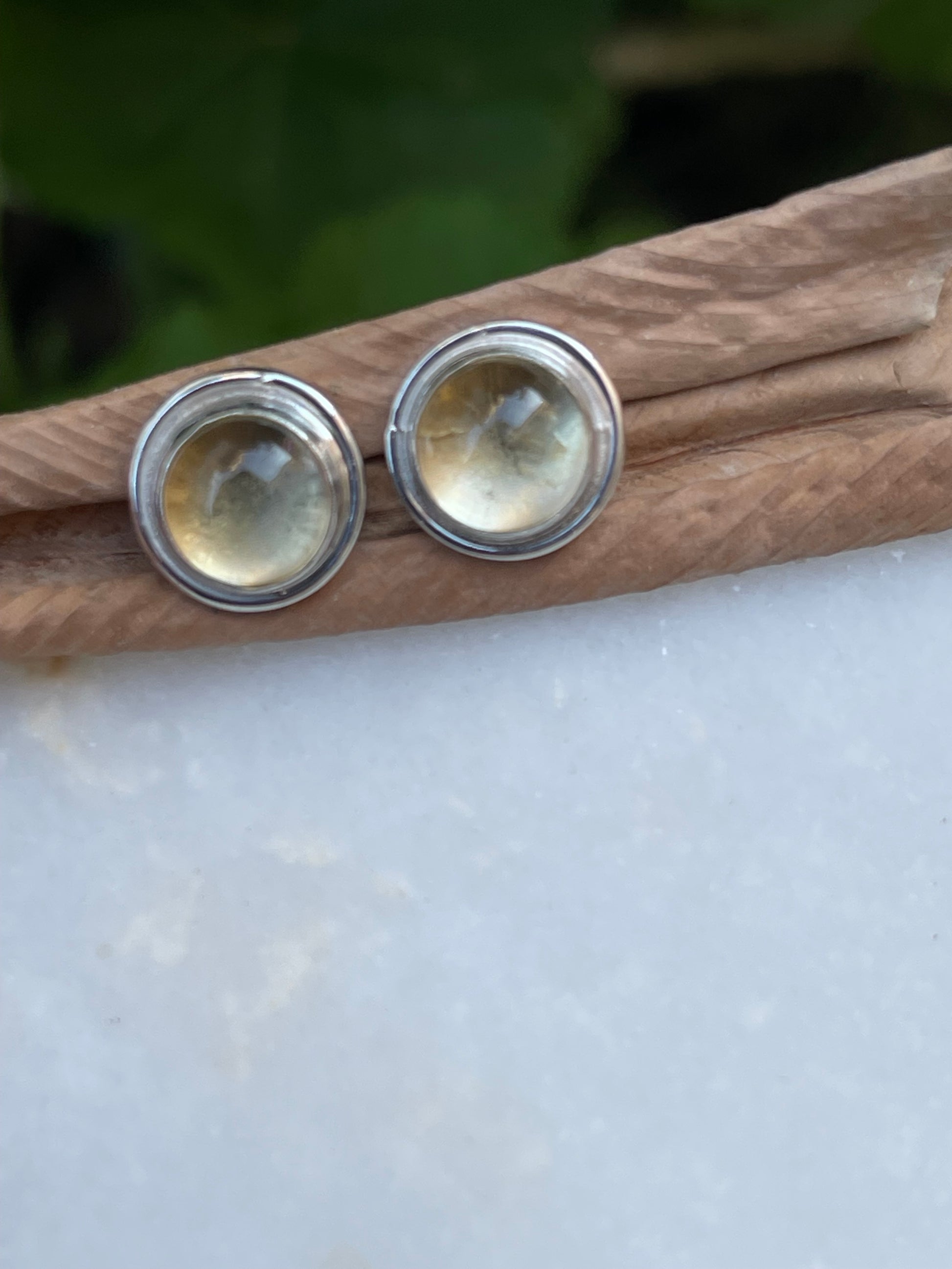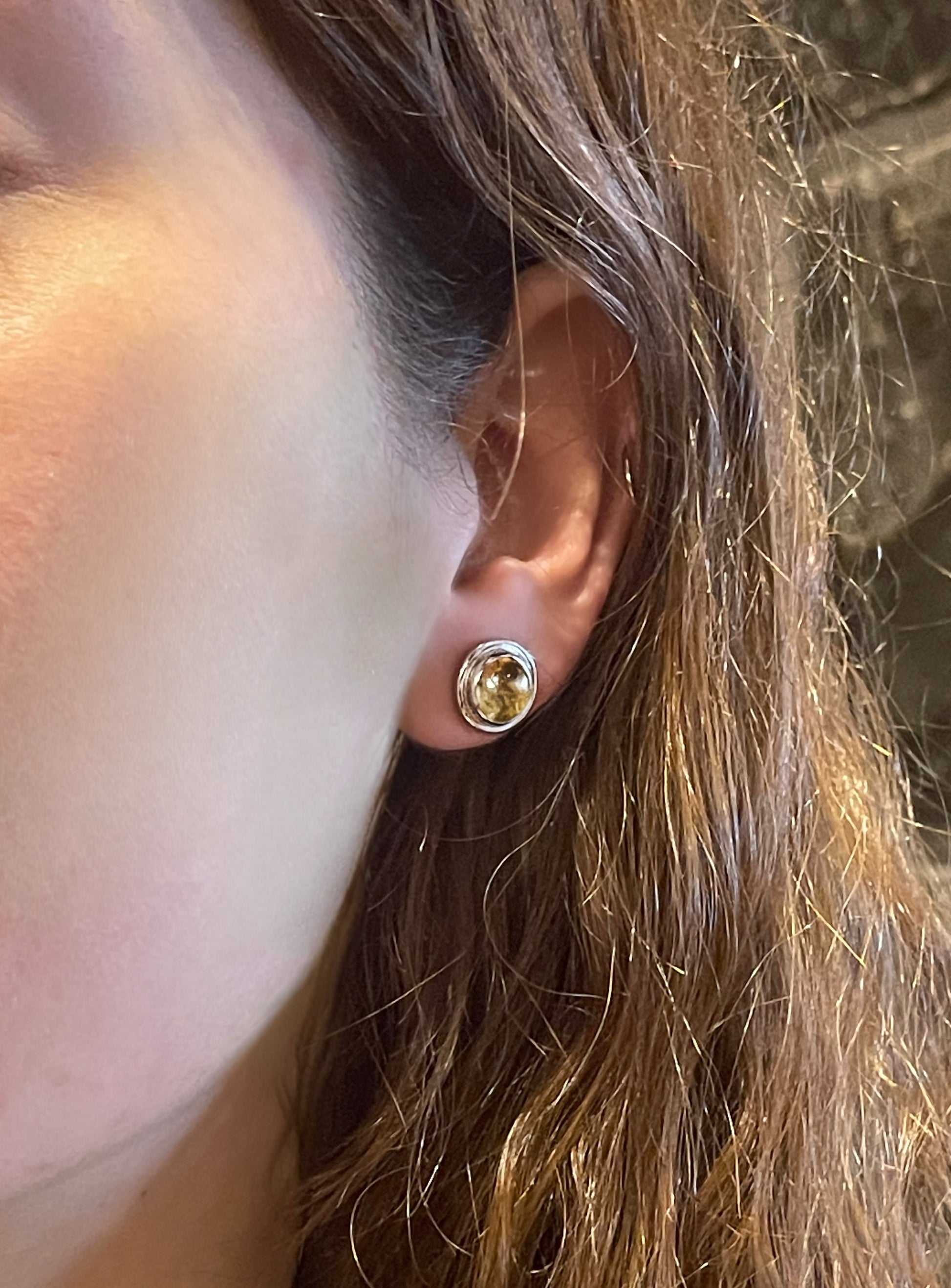 Sitrin Taşlı Minimal Gümüş Çivi Küpe