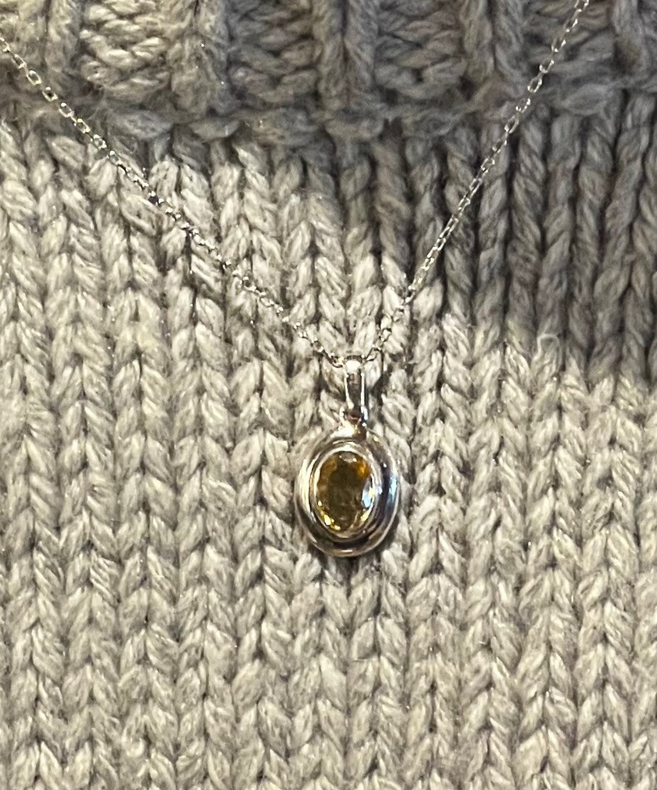 Sitrin Taşlı Mikron Rodyum Kaplama Gümüş Minimal Kolye