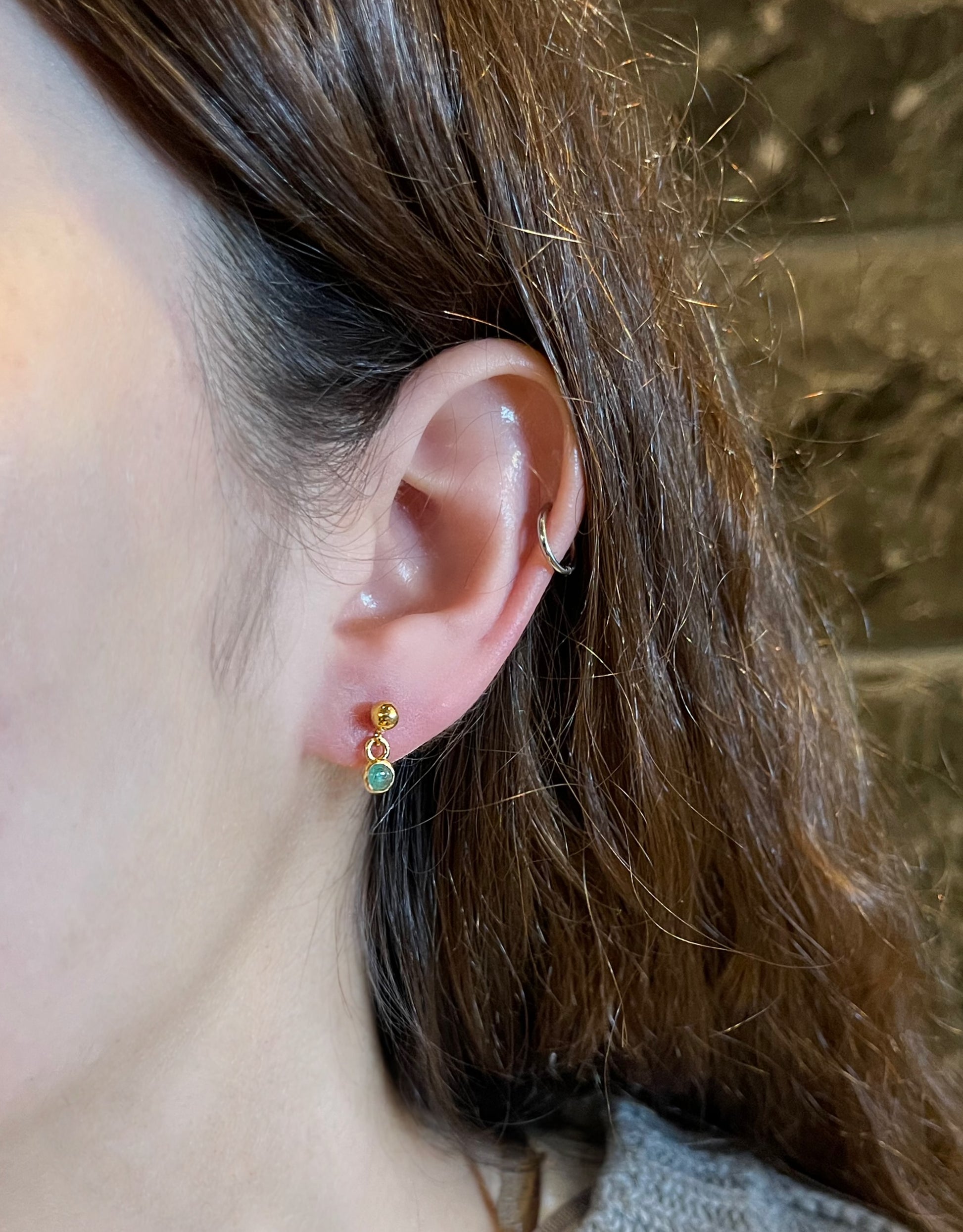 Mini Sallantılı Zümrüt Taşlı Altın Küpe