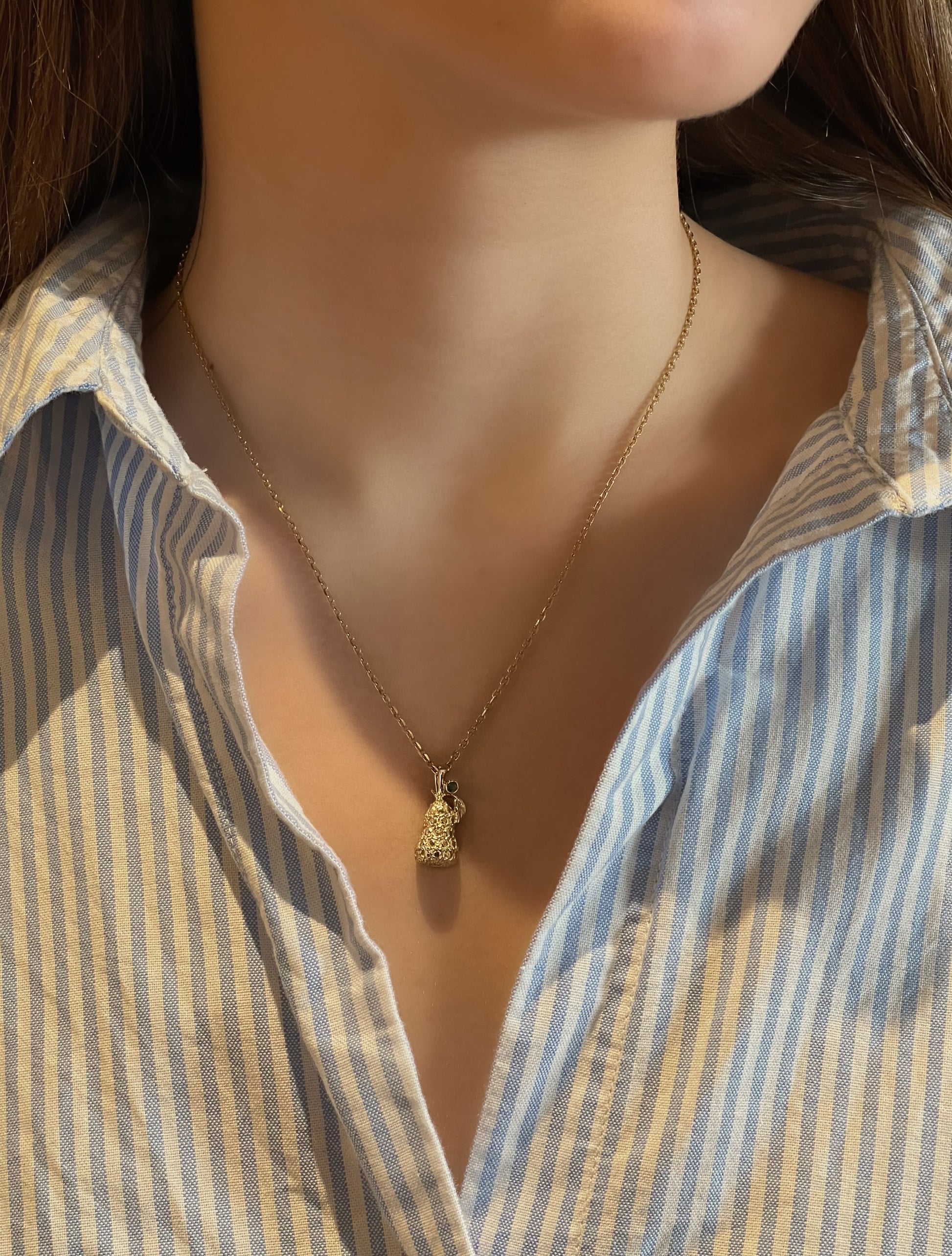 Zümrüt taşlı altın Armut figür Vintage Kolye