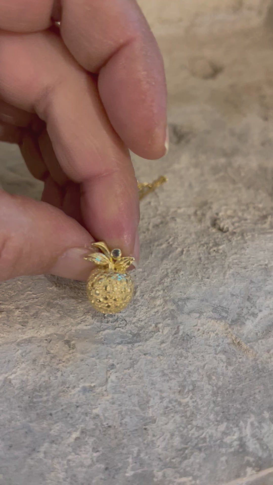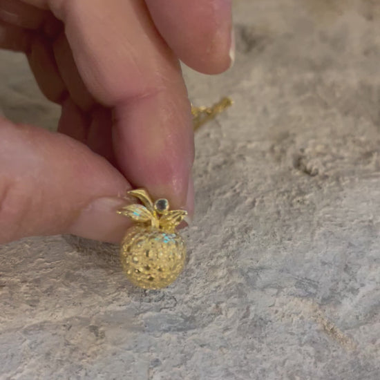 Zümrüt taşlı altın kaplama elma figür vintage gümüş kolye