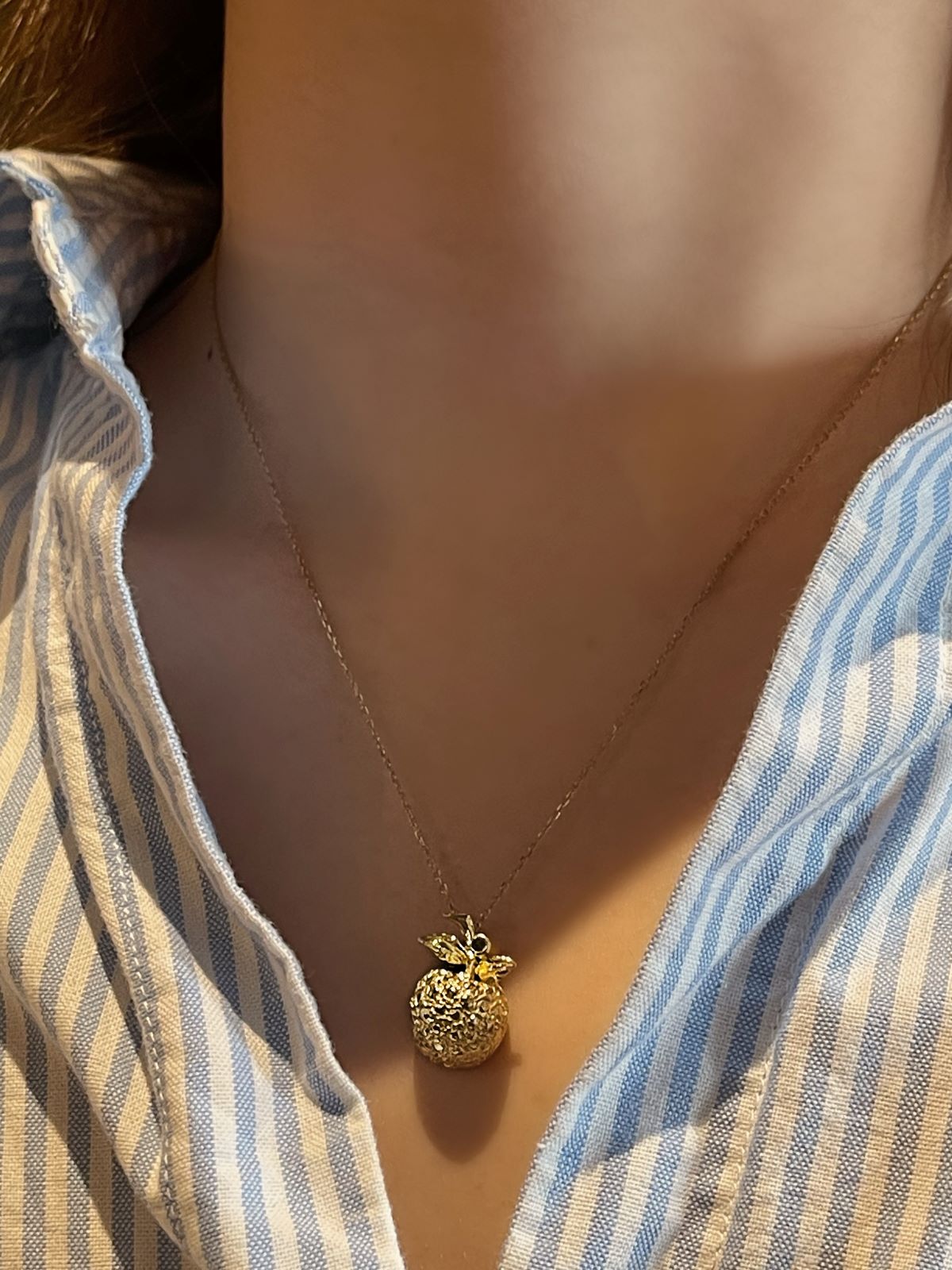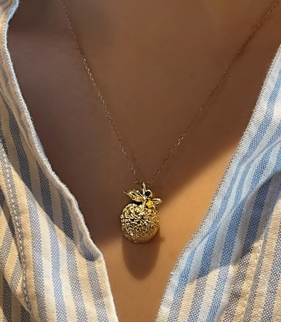 Zümrüt taşlı altın kaplama elma figür vintage gümüş kolye