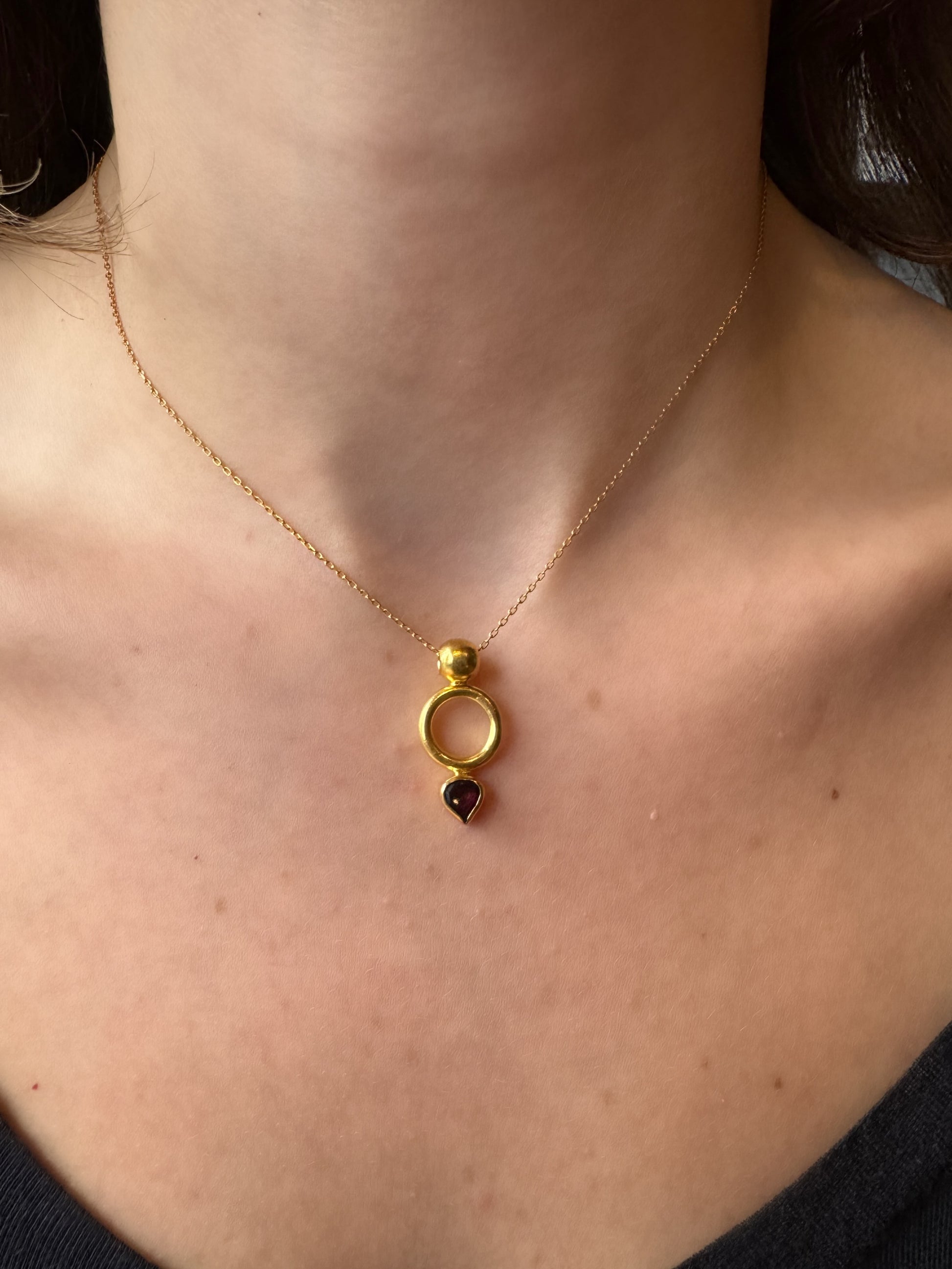 Granat Taşlı Altın Otantik Kolye