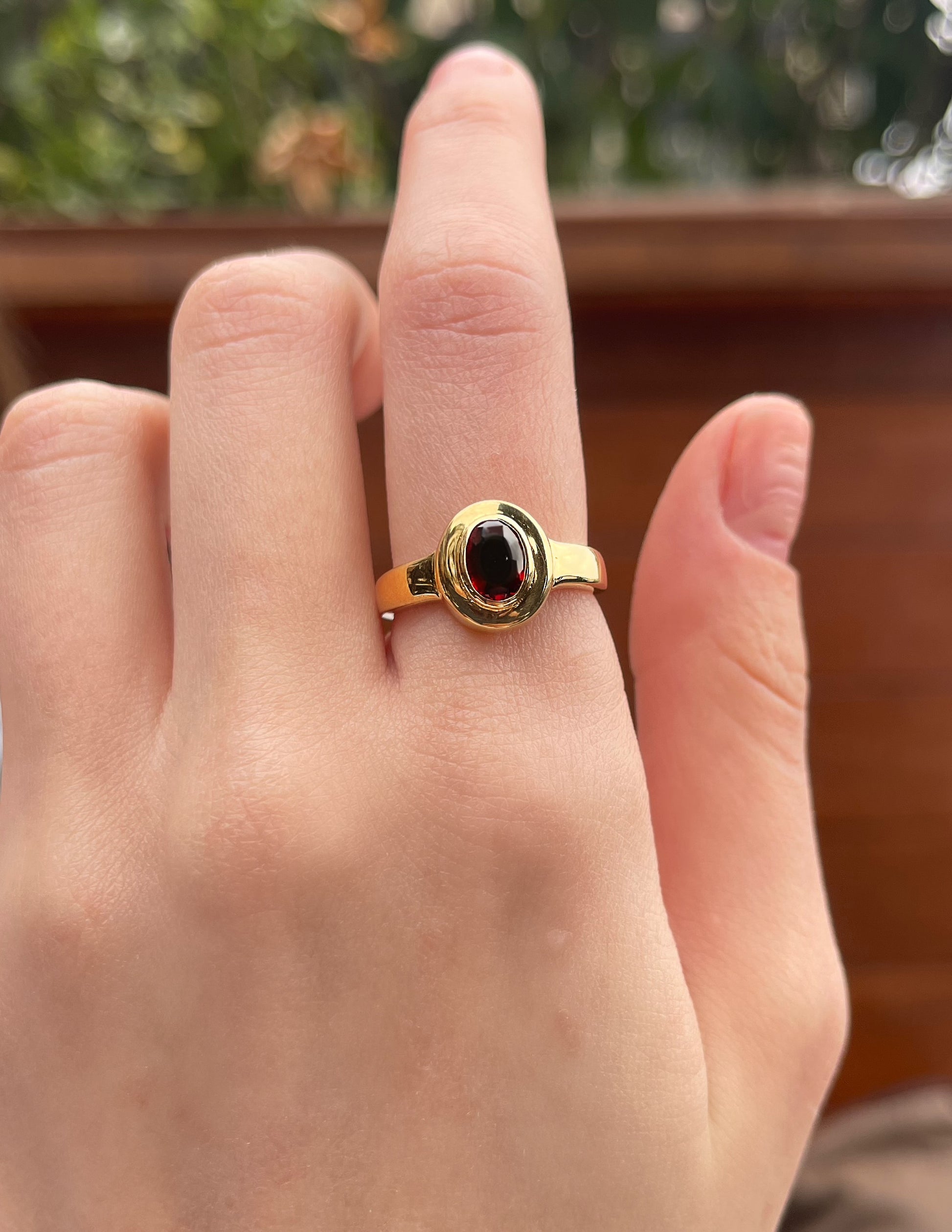 Granat Taşlı Mikron Altın Kaplama Gümüş Minimal Yüzük