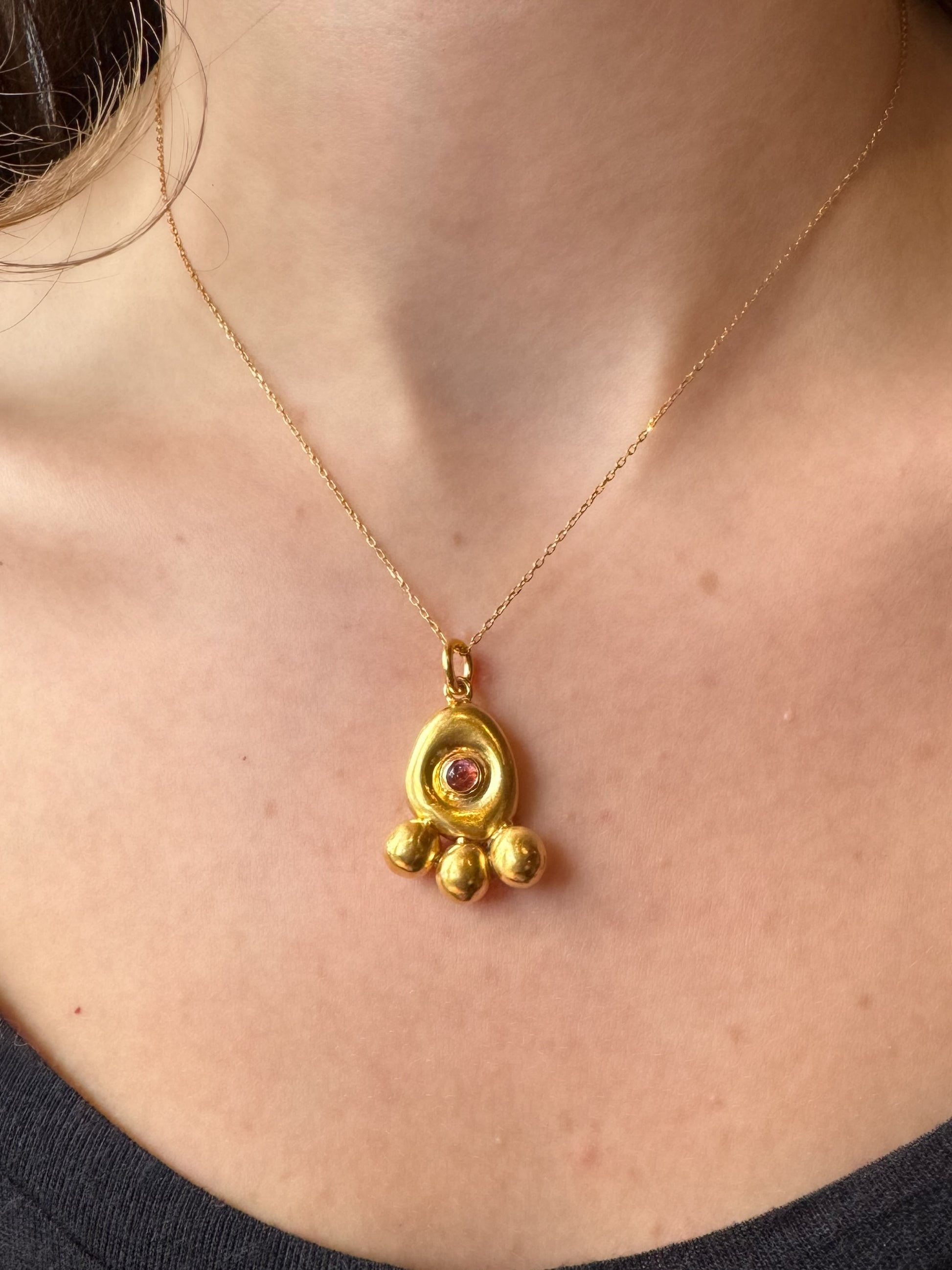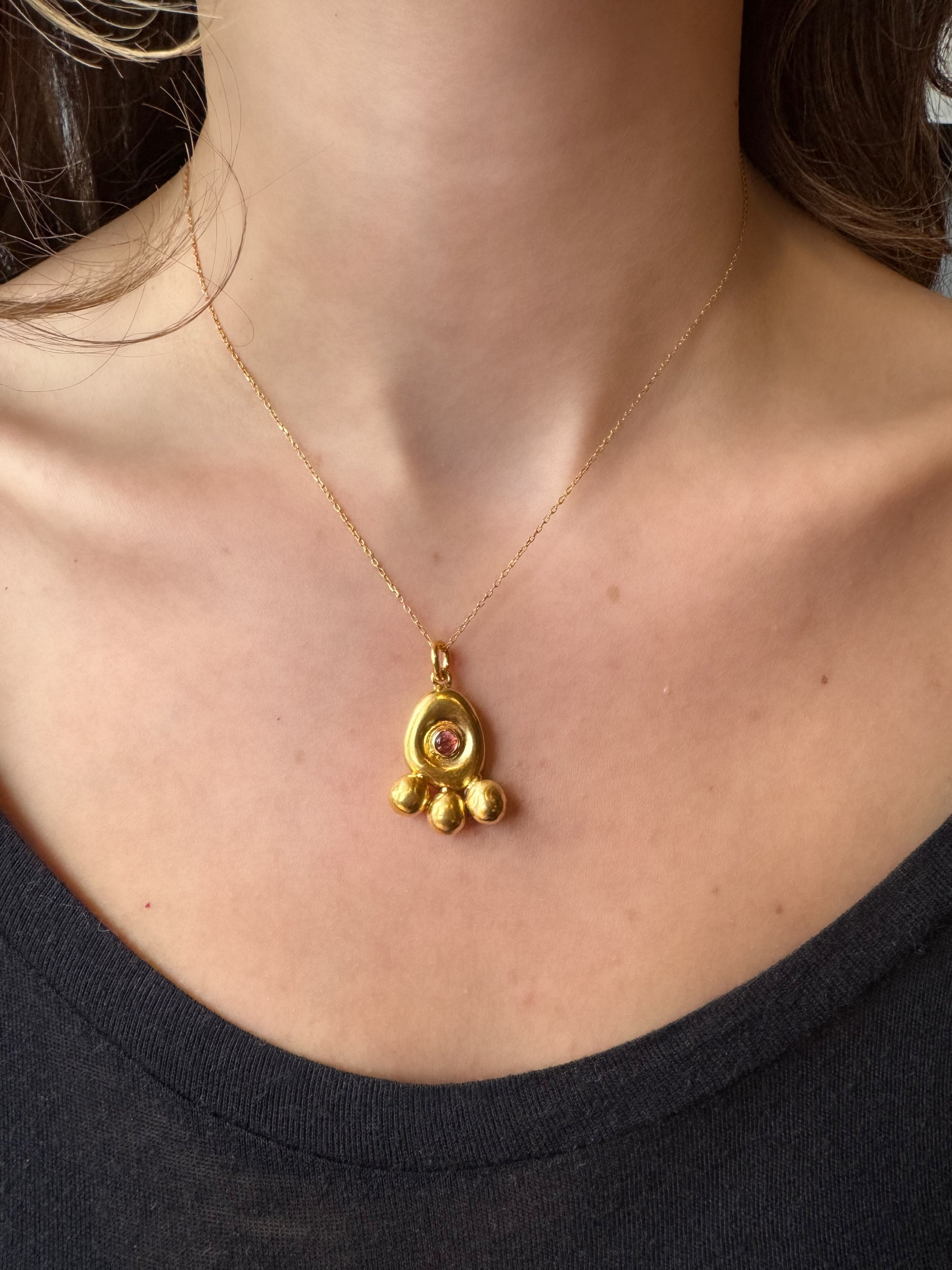 Turmalin Taşlı Altın Otantik Güverseli Kolye