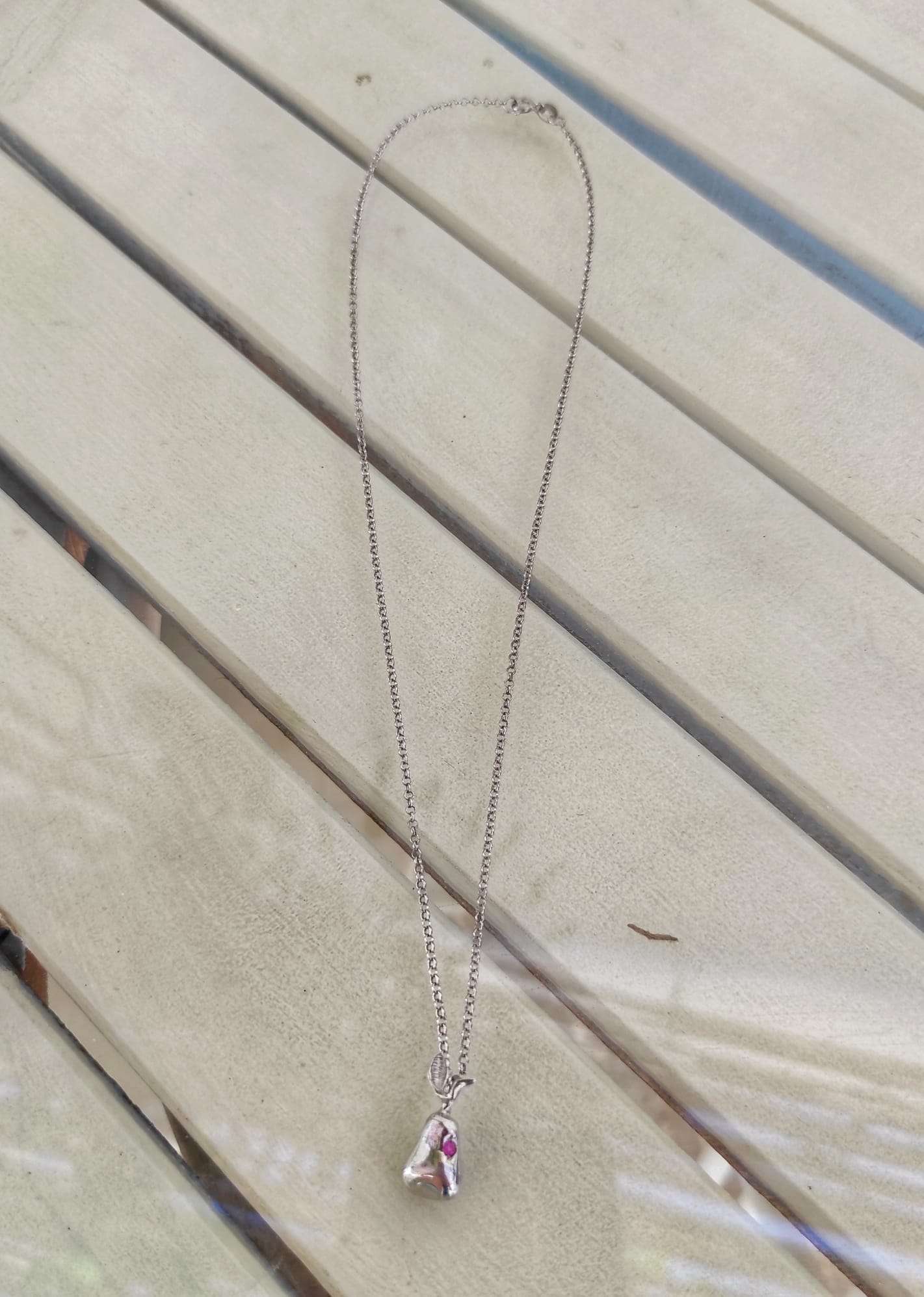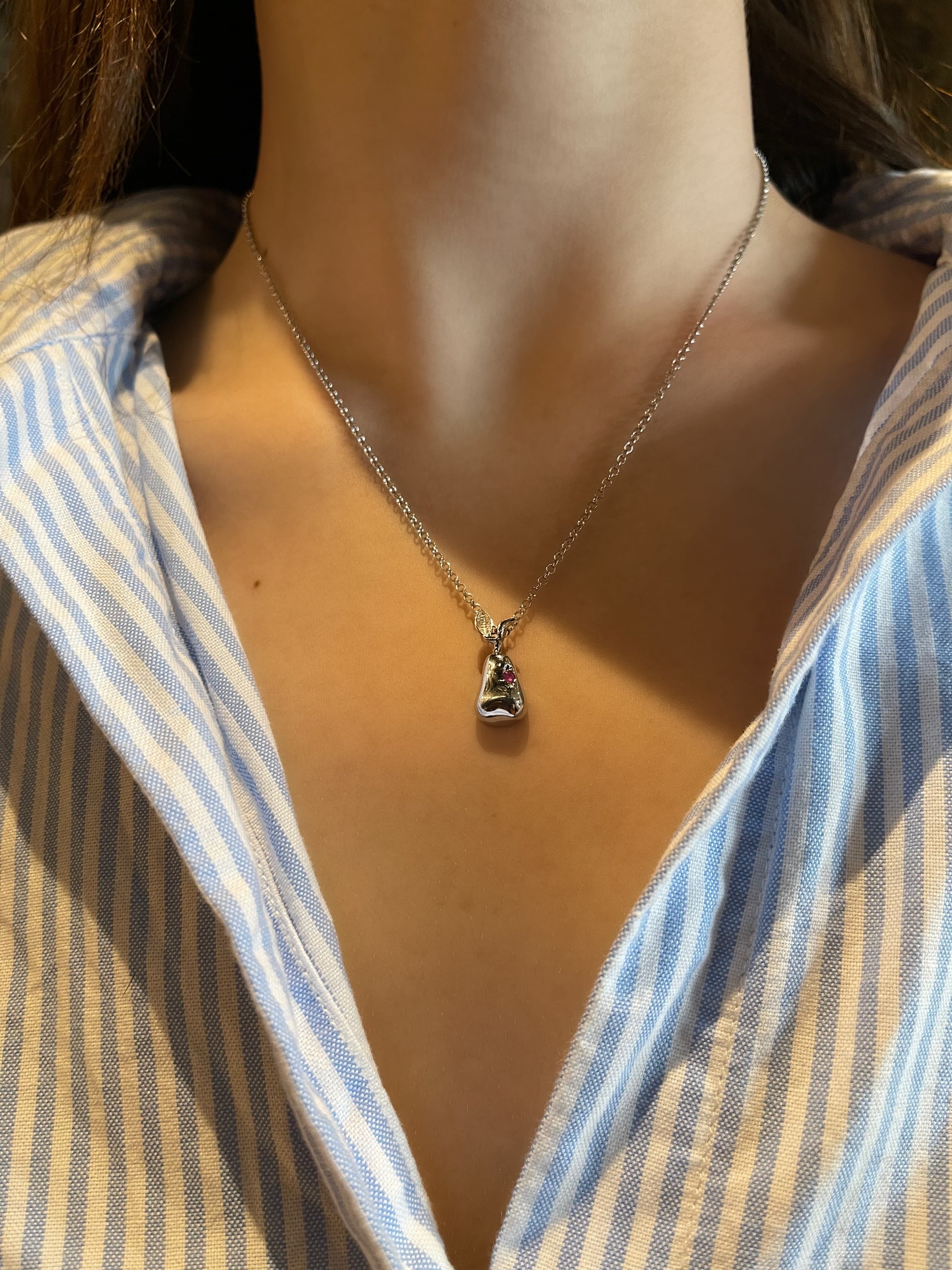 Yakut Taşlı Rodyum Kaplama Gümüş Minimal Vintage Havasında Armut figürü Kolye