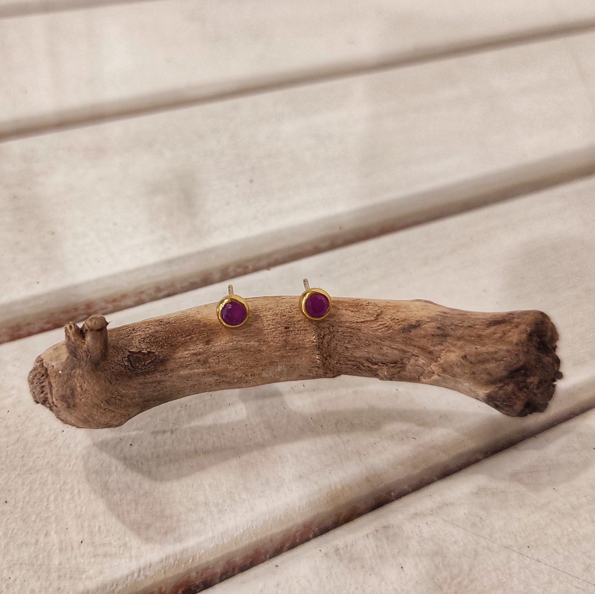 Yakut Taşlı Altın Kaplama Çivi Küpe