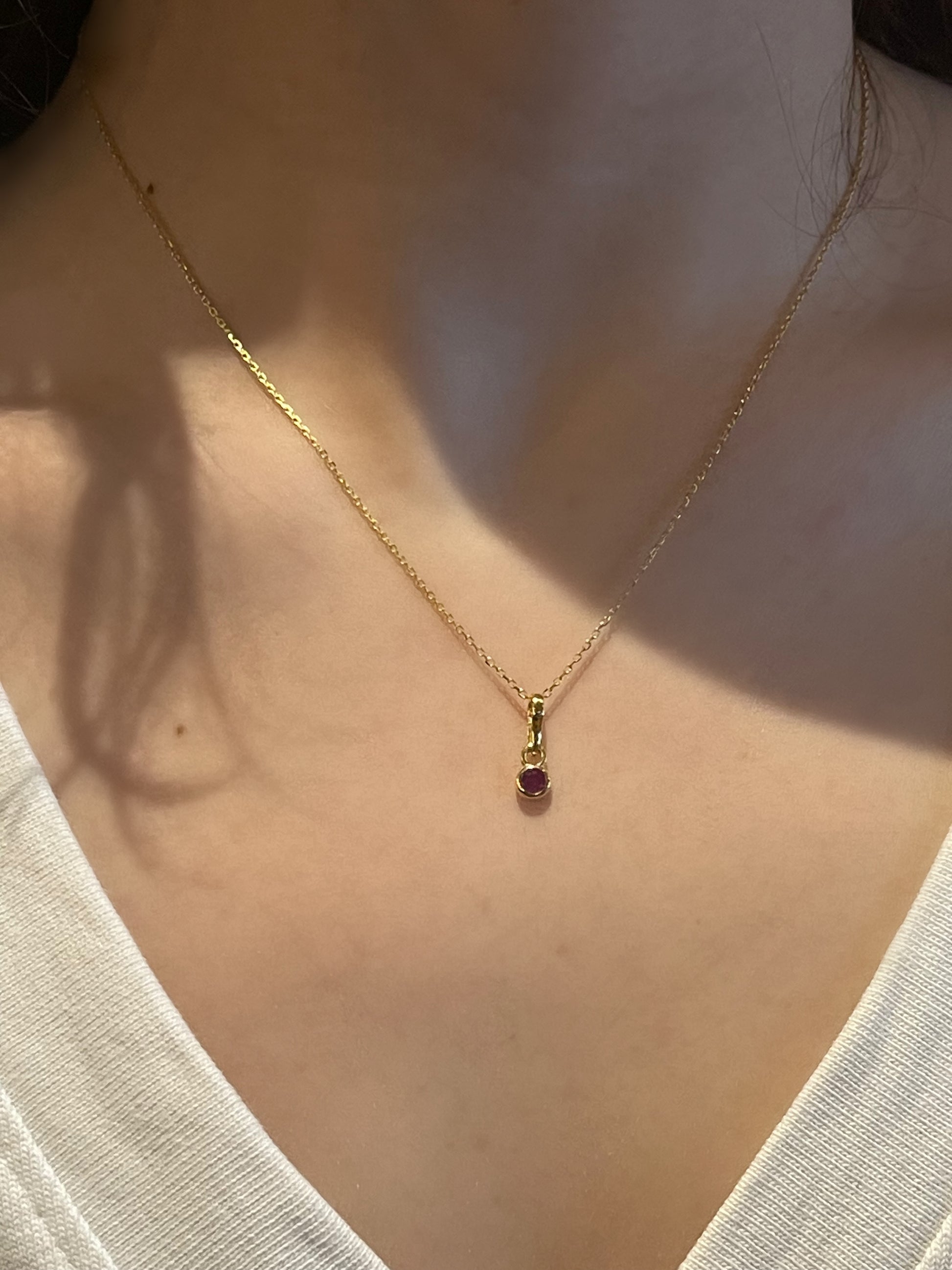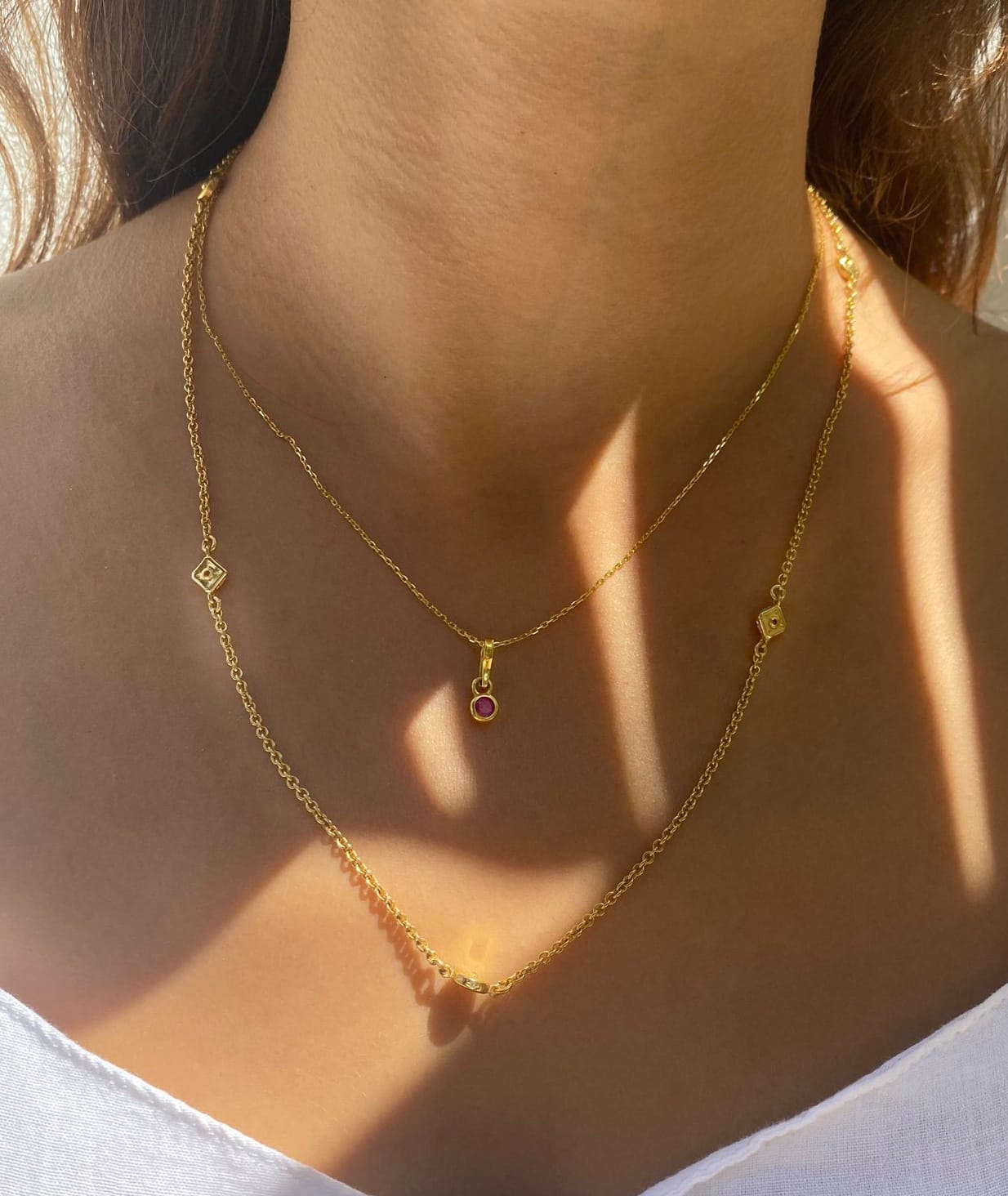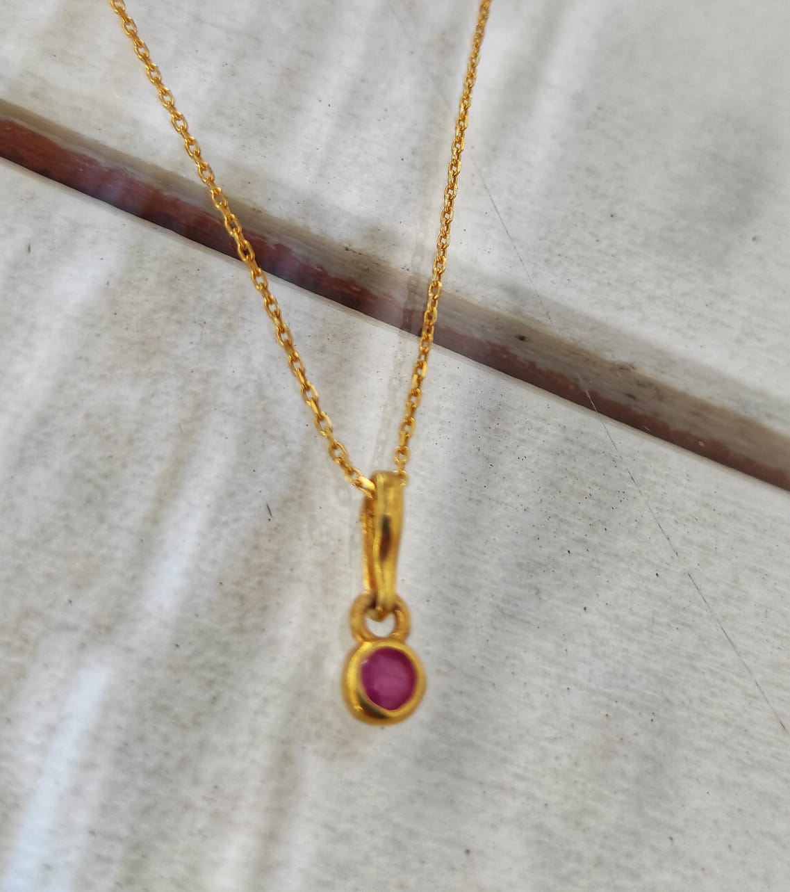 Yakut Taşlı Altın Kaplama Gümüş Minimal Kolye