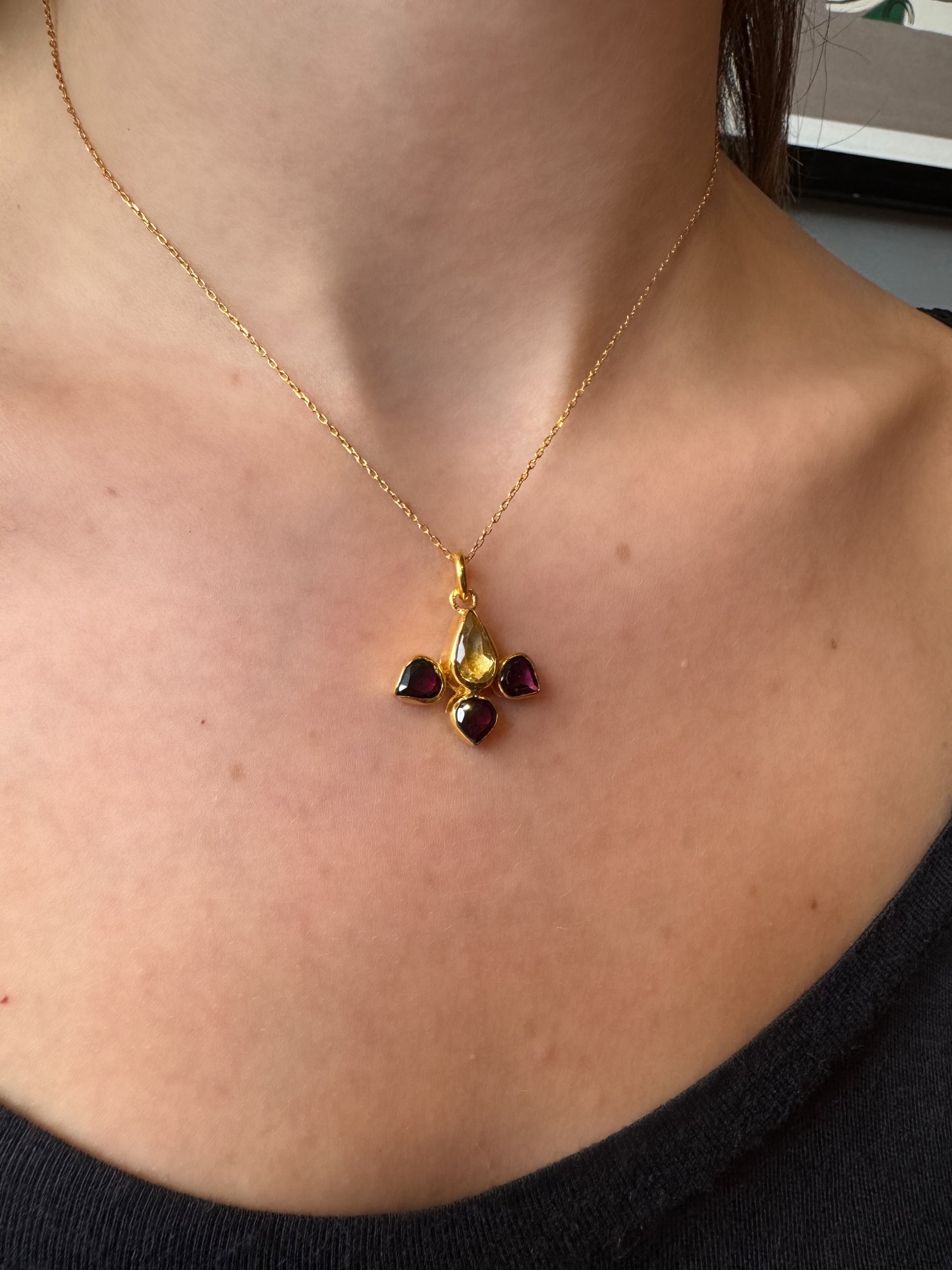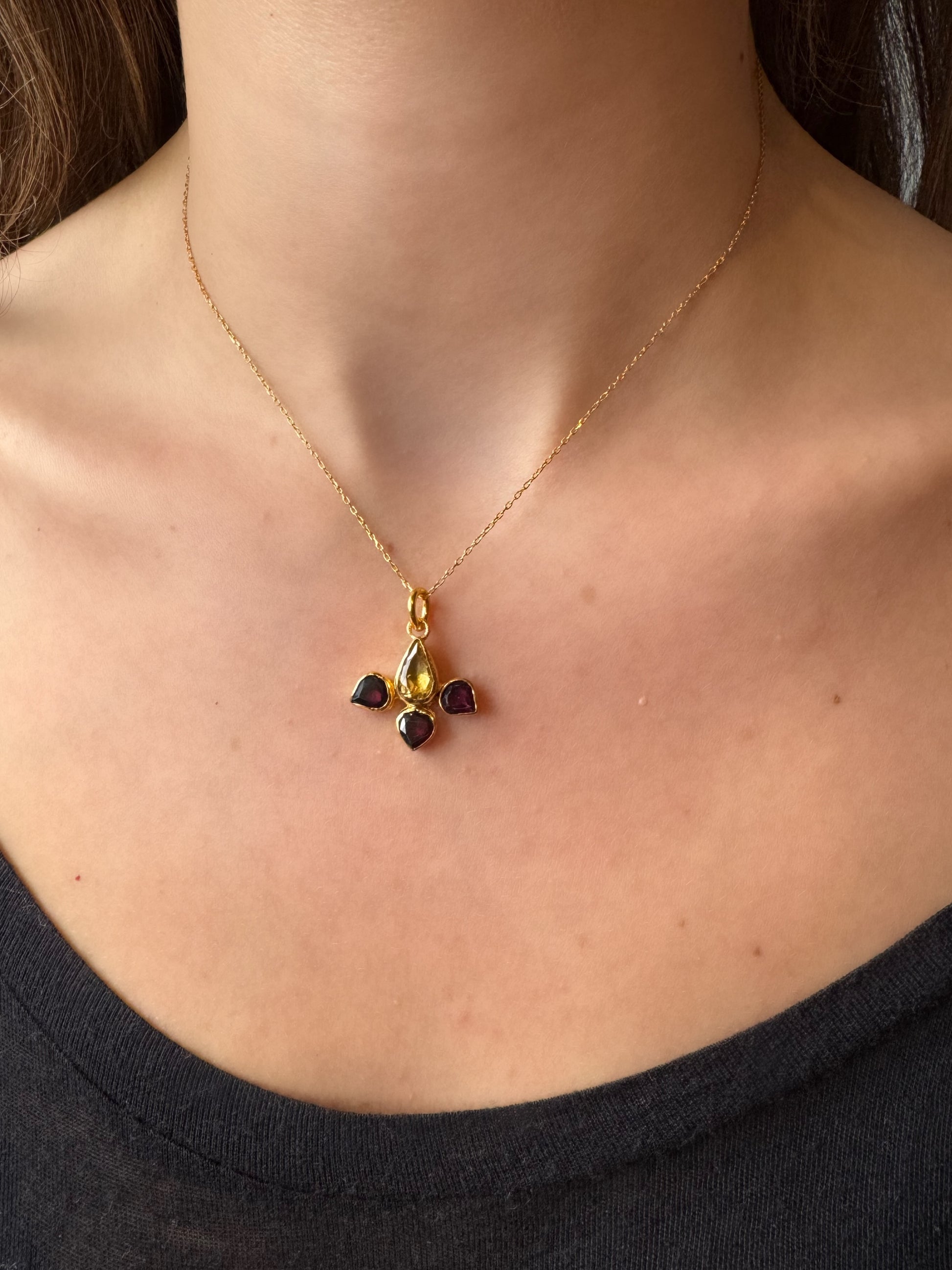 Sitrin ve Granat Taşlı Altın Otantik Kolye