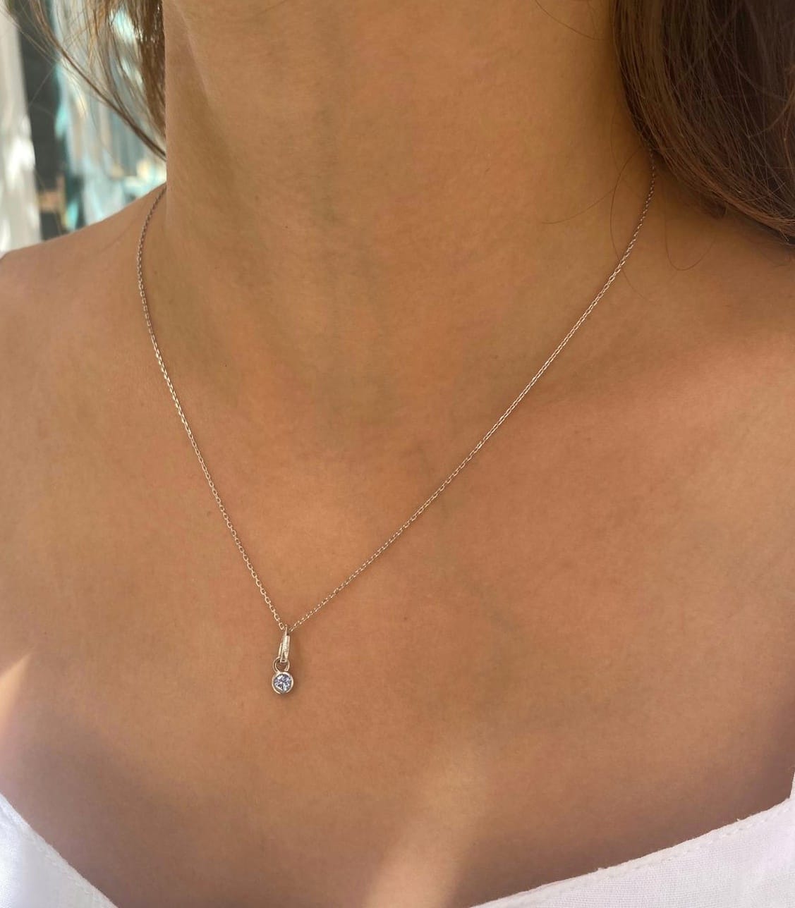 Sky Topaz Taşlı Rodyum Kaplama Gümüş Minimal Kolye
