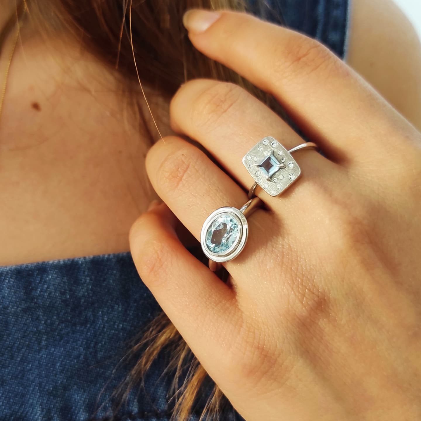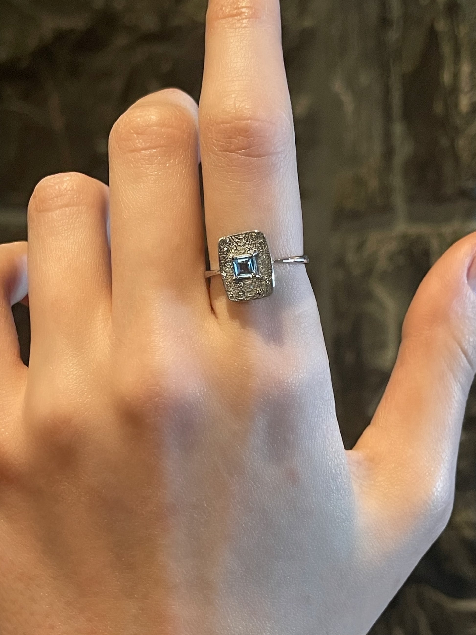 Sky Topaz Taşlı Rodyum Kaplama Gümüş Yüzük