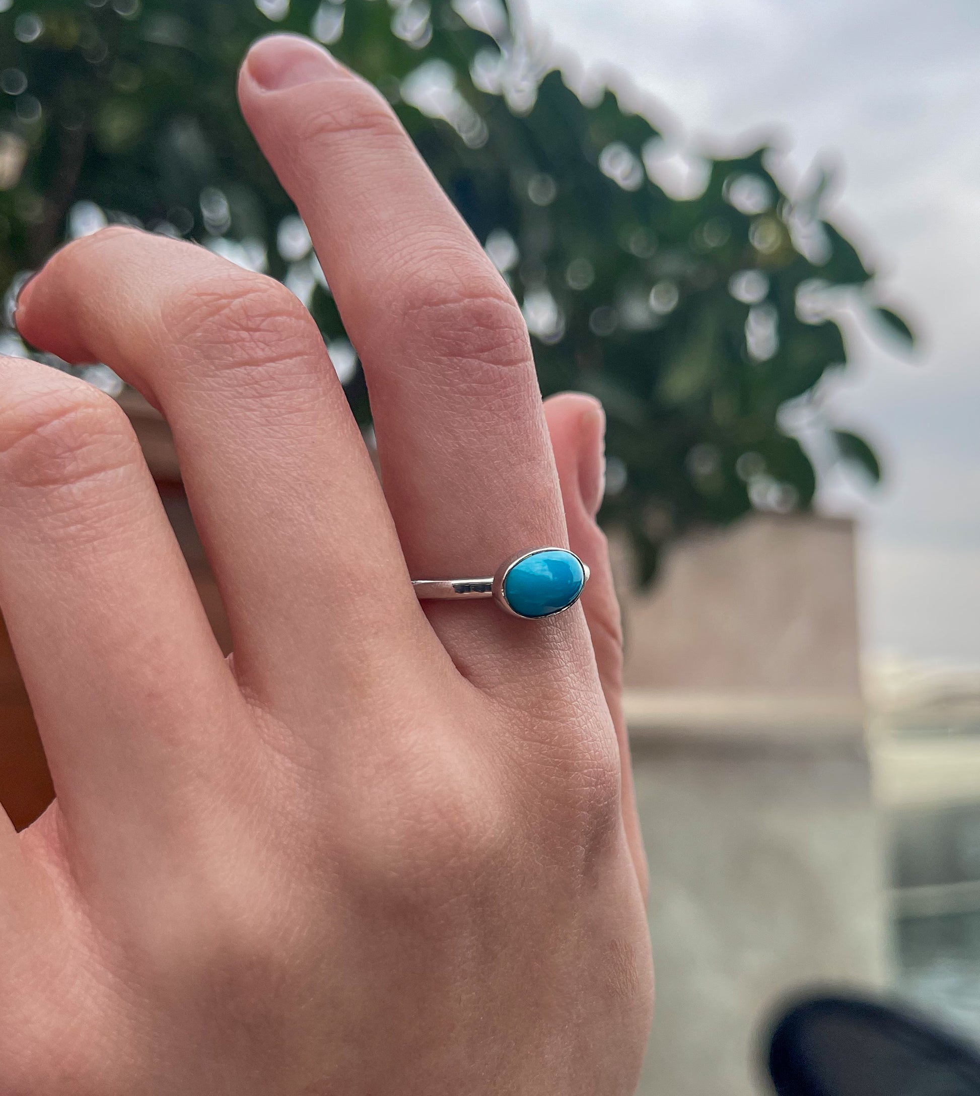 Firuze/Turkuaz Rodyum Kaplama El İşi Otantik Gümüş Yüzük