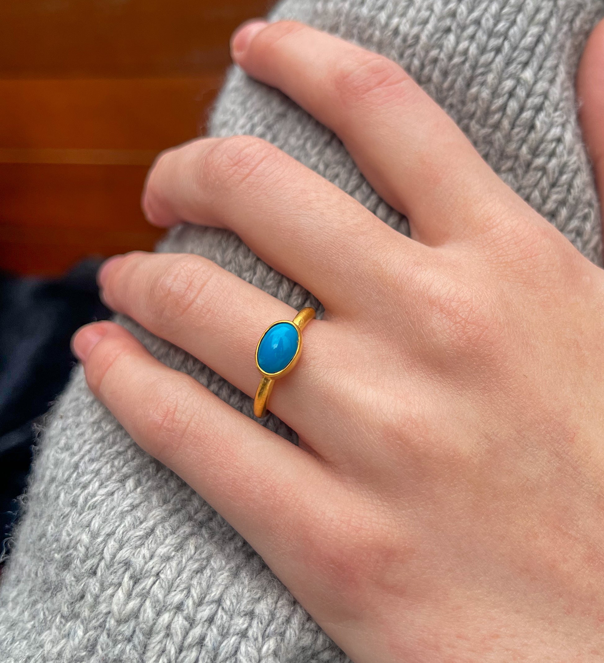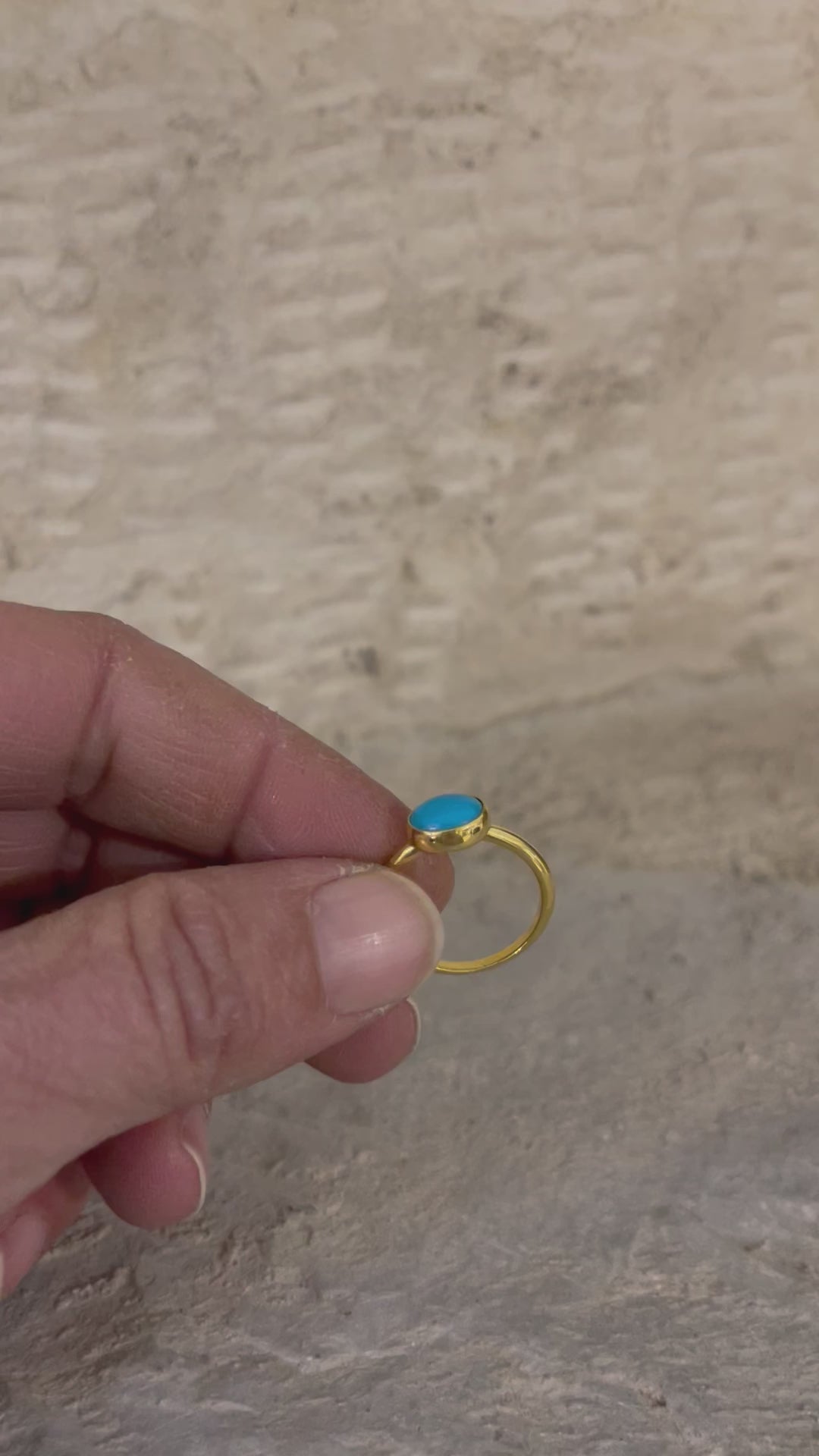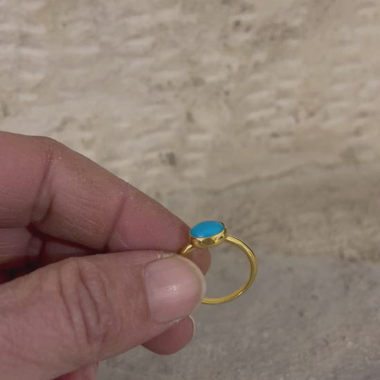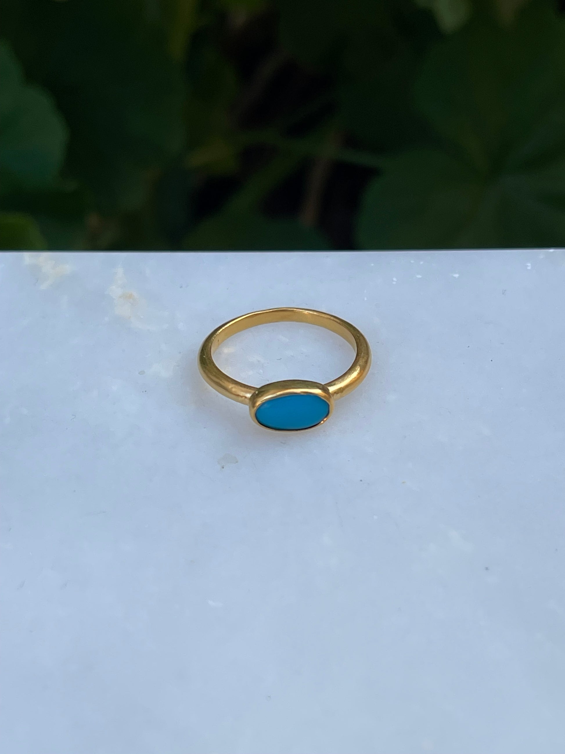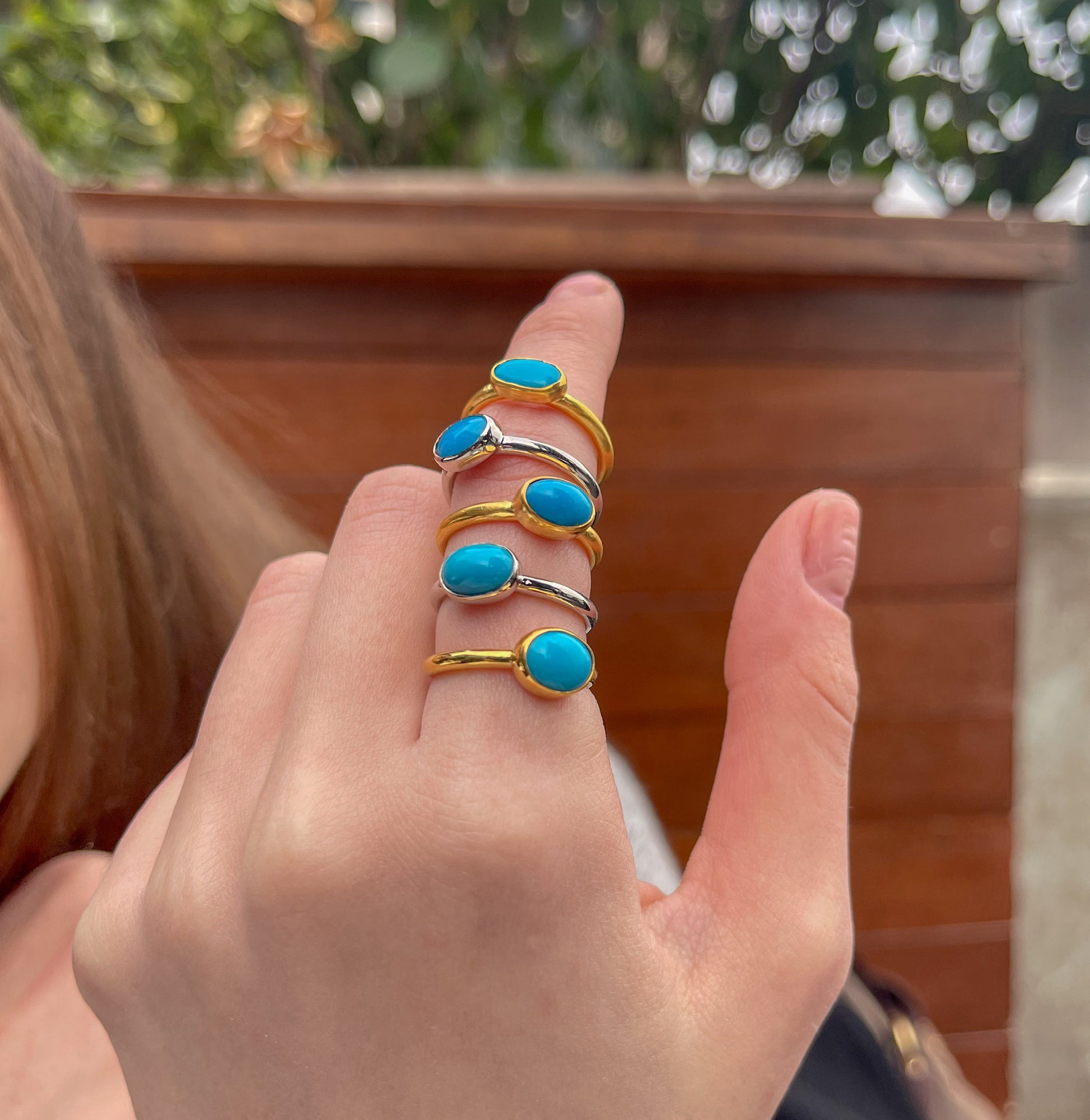 Firuze/Turkuaz Altın Kaplama El İşi Otantik Gümüş Yüzük