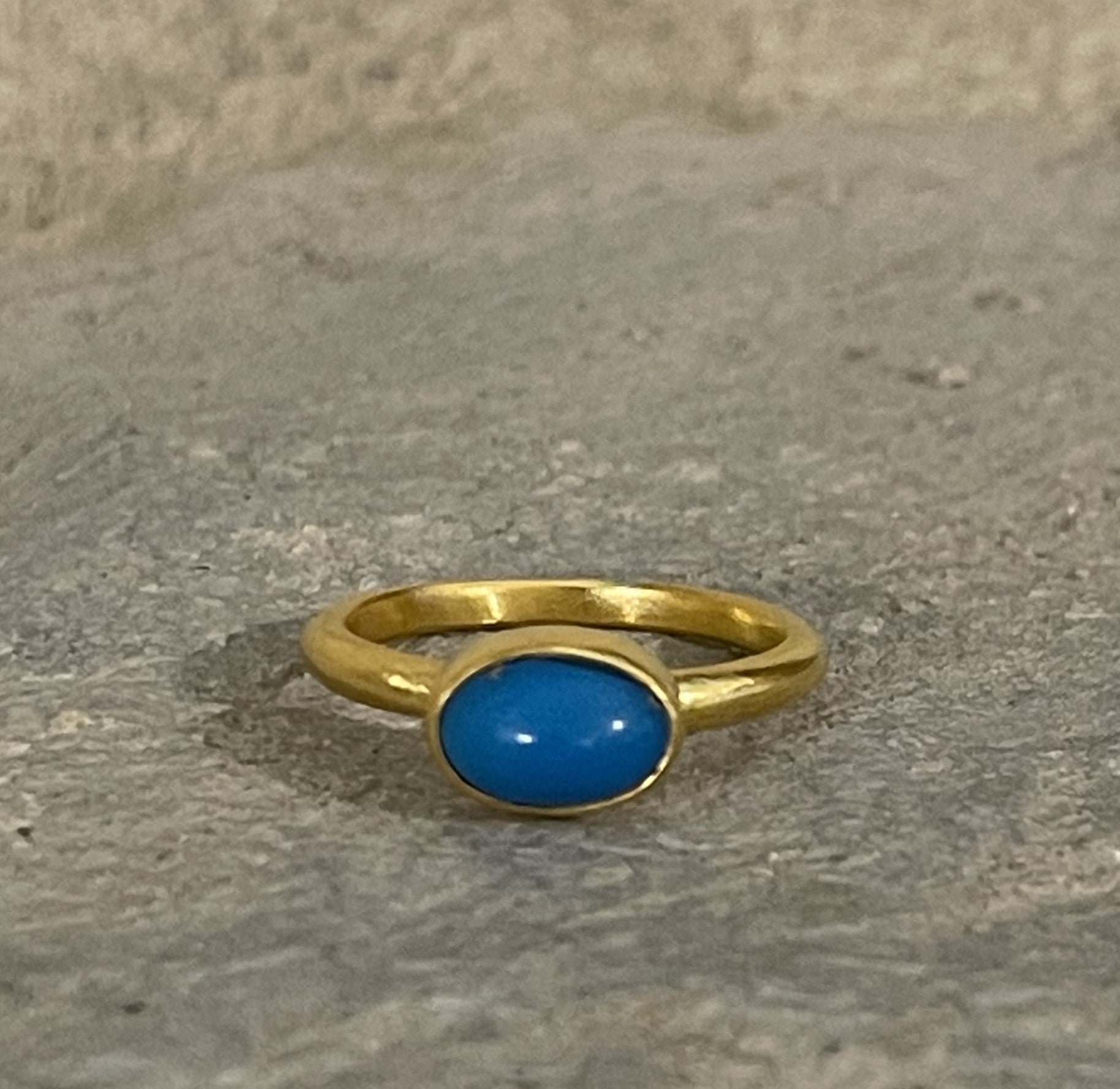 Doğal Firuze/Arizona Turkuaz kapşon kesim taşımızla 925 ayar Gümüş üzeri 0,50 mikron altın kaplama otantik el işi dövme tekniğiyle yapılmış yüzüğümüz 14 numara, ölçünüzü bildirirseniz parmağınıza göre hazırlayabiliyoruz, şık yüzüğümüzü kimyasallardan uzak tutarsanız uzun süre ilk günkü gibi kullanabilirsiniz. Mağazamızda satışa sunduğumuz yüzüğümüz kendi Tasarımımız ve üretimimizdir. DOĞAL olarak belirttiğimiz taşlı takılarımızda kullanılan taşlarımız için GARANTİ vermek isteriz. Sentetik Zirkon grubu taşlar ürünlerimizde kullanılırsa bu ürün açıklamalarında belirtilir..